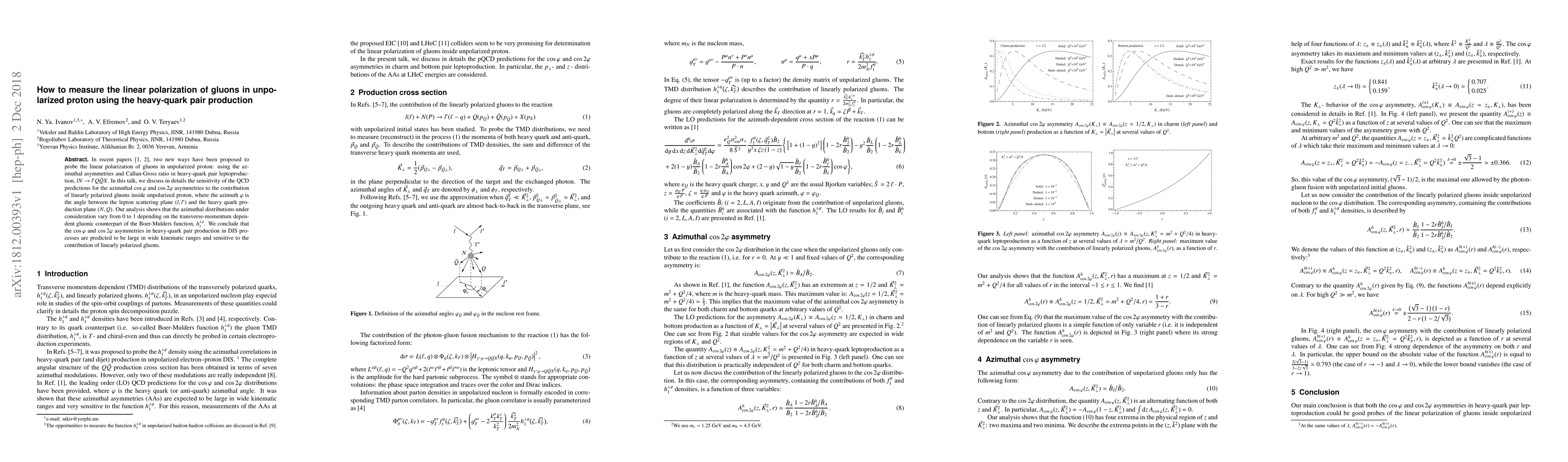 In recent papers [1,2], two new ways have been proposed to probe the linear polarization of gluons in unpolarized proton: using the azimuthal asymmetries and Callan-Gross ratio in heavy-quark pair leptoproduction, $lN\rightarrow l^{\prime}Q\bar{Q}X$. In this talk, we discuss in details the sensitivity of the QCD predictions for the azimuthal $\cos \varphi$ and $\cos 2\varphi$ asymmetries to the contribution of linearly polarized gluons inside unpolarized proton, where the azimuth $\varphi$ is the angle between the lepton scattering plane $(l,l^{\prime})$ and the heavy quark production plane $(N,Q)$. Our analysis shows that the azimuthal distributions under consideration vary from 0 to 1 depending on the transverse-momentum dependent gluonic counterpart of the Boer-Mulders function, $h_{1}^{\perp g}$. We conclude that the $\cos \varphi$ and $\cos 2\varphi$ asymmetries in heavy-quark pair production in DIS processes are predicted to be large in wide kinematic ranges and sensitive to the contribution of linearly polarized gluons.