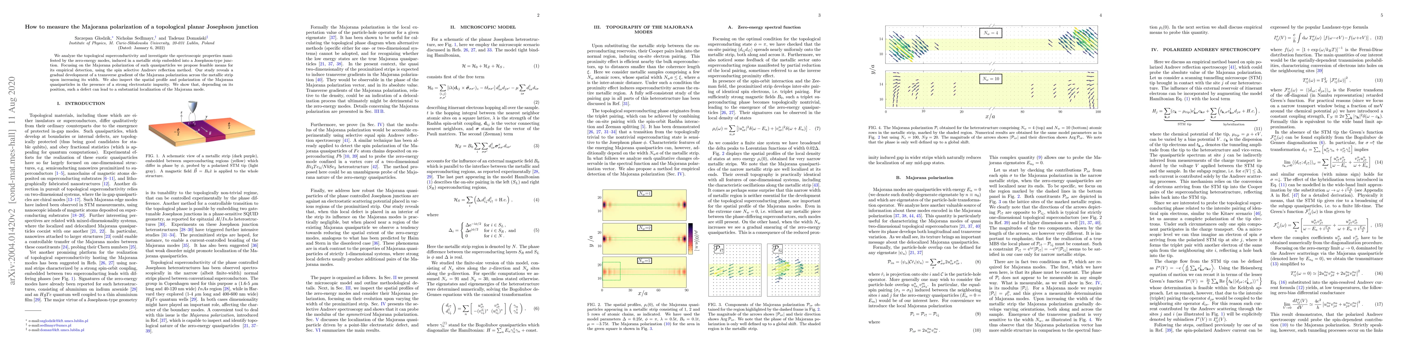 We analyze the topological superconductivity and investigate the spectroscopic properties manifested by the zero-energy modes, induced in a metallic strip embedded into a Josephson-type junction. Focusing on the Majorana polarization of such quasiparticles, we propose feasible means for its empirical detection, using the spin-selective Andreev reflection method. Our study reveals a gradual development of a transverse gradient of the Majorana polarization across the metallic strip upon increasing its width. We also inspect the spatial profile and polarization of the Majorana quasiparticles in the presence of a strong electrostatic impurity. We show that, depending on its position, such a defect can lead to a substantial localization of the Majorana mode.