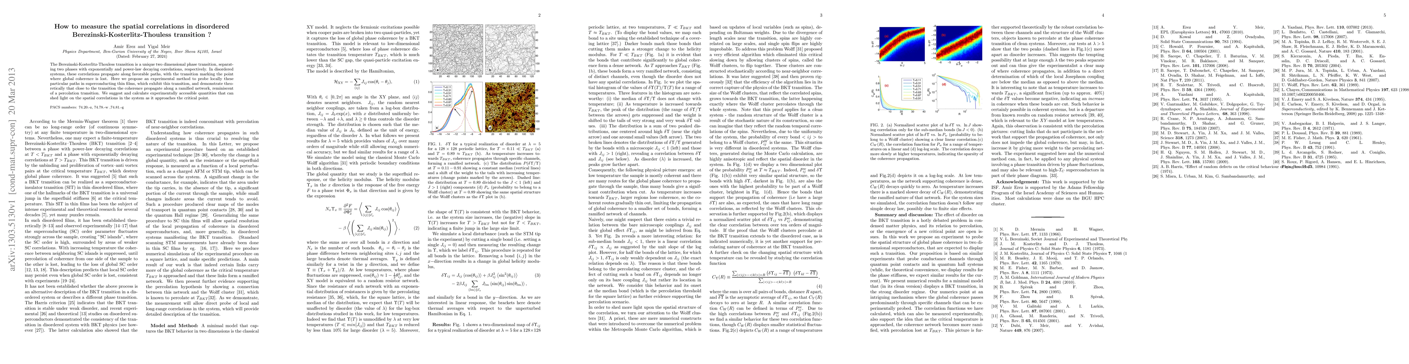 The paper introduces a method to analyze the spatial correlations in disordered systems undergoing a Berezinski-Kosterlitz-Thouless transition, using the helicity modulus and Wolff clusters as key quantities.