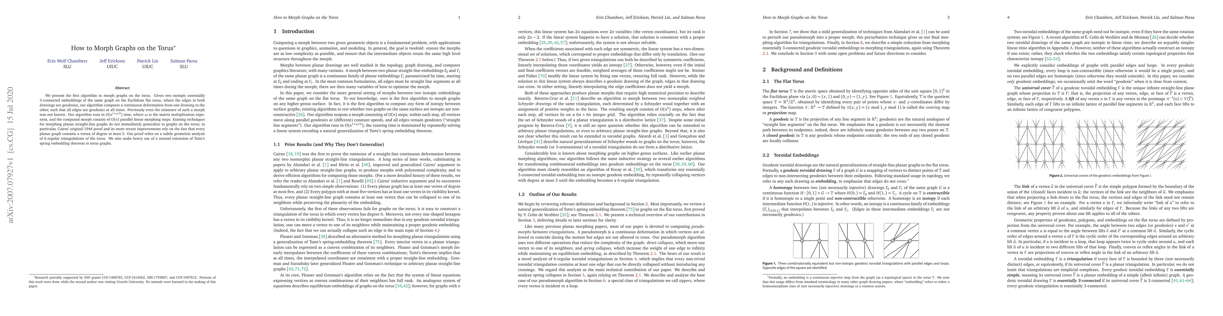 This paper introduces the first algorithm for morphing graphs on the torus, providing a continuous deformation between two isotopic embeddings while maintaining geodesic edges throughout. The algorithm operates in $O(n^{1+\omega/2})$ time and employs a geometric analysis of 6-regular triangulations, extending Tutte's spring embedding theorem to torus graphs.