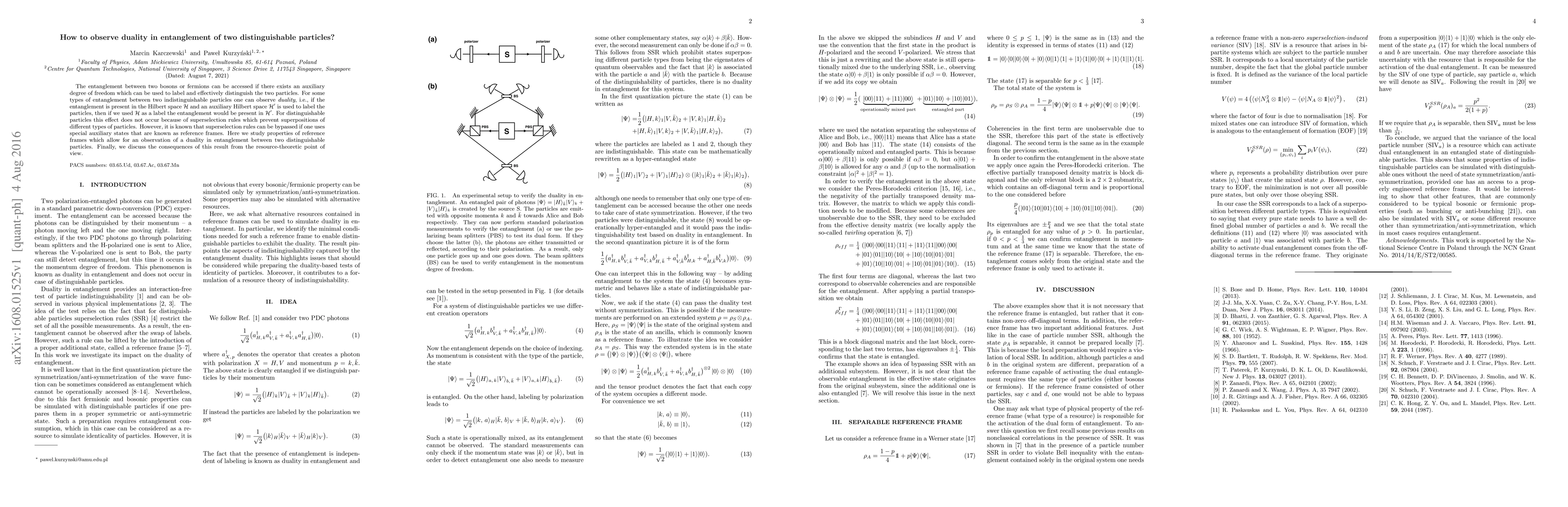 Researchers found that using special auxiliary states called reference frames can bypass superselection rules and enable observing duality in entanglement between two distinguishable particles.