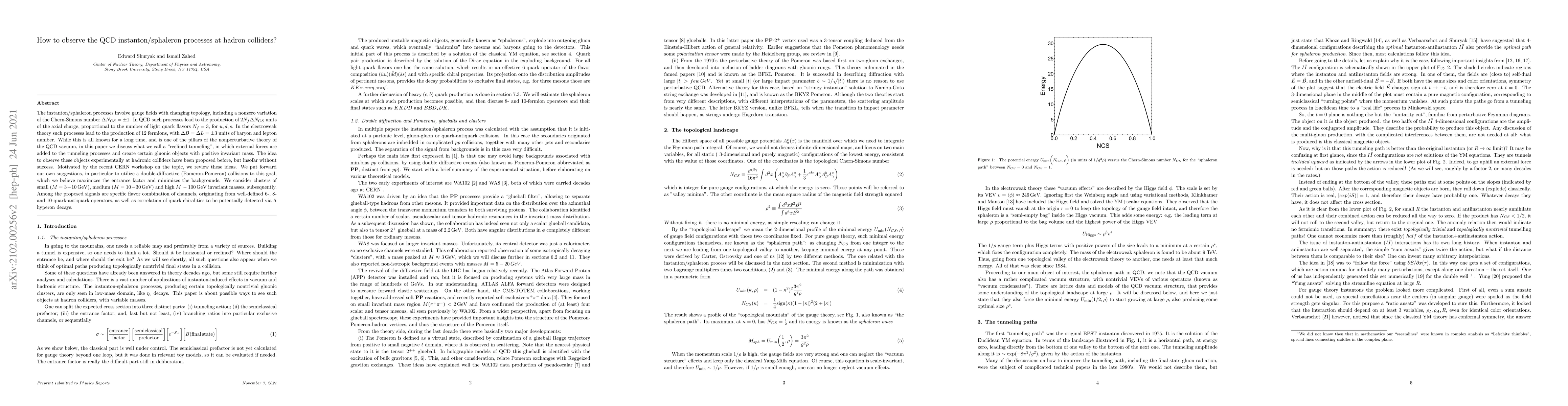 The instanton/sphaleron processes involve gauge fields with changing topology through a nonzero variation of the Chern-Simons number $\delta N_{CS}=\pm 1$. In QCD this leads to the production of $2N_f \delta N_{CS}$ units of axial charge, and in the electroweak theory to the production of 12 fermions, with $\Delta B=\delta L=3$ units of baryon and lepton number, a key mechanism in baryogenesis. While this is all known for a long time, and is one of the pillars of the nonperturbative theory of the QCD vacuum, to see these phenomena directly in colliders remains an unfulfilled promise. Motivated by the recent CERN workshop on the topic, we review the field. We also put forward our own suggestions to utilize double-diffractive (or Pomeron-Pomeron) collisions to this goal, which maximizes the entrance factor and minimizes the backgrounds. We consider separately clusters of small ($M=3-10\, {\rm GeV}$), medium ($10-30\, {\rm GeV}$) and high $M\sim 100 \, {\rm GeV}$ invariant masses. Among the proposed signals are specific flavor combination of channels, originating from well-defined 6-, 8- and 10-quark-antiquark operators, as well as correlation of quark chiralities to be potentially detected via $\Lambda$ hyperon decays.