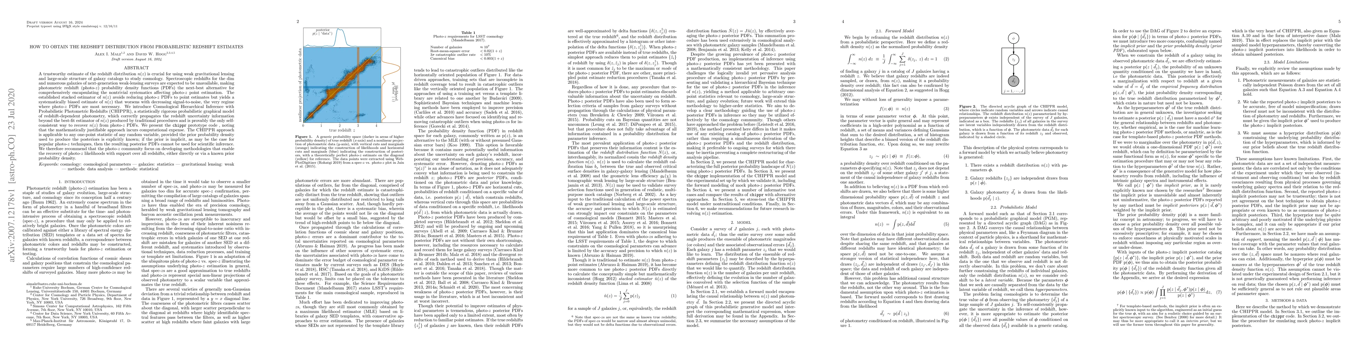 A trustworthy estimate of the redshift distribution $n(z)$ is crucial for using weak gravitational lensing and large-scale structure of galaxy catalogs to study cosmology. Spectroscopic redshifts for the dim and numerous galaxies of next-generation weak-lensing surveys are expected to be unavailable, making photometric redshift (photo-$z$) probability density functions (PDFs) the next-best alternative for comprehensively encapsulating the nontrivial systematics affecting photo-$z$ point estimation. The established stacked estimator of $n(z)$ avoids reducing photo-$z$ PDFs to point estimates but yields a systematically biased estimate of $n(z)$ that worsens with decreasing signal-to-noise, the very regime where photo-$z$ PDFs are most necessary. We introduce Cosmological Hierarchical Inference with Probabilistic Photometric Redshifts (CHIPPR), a statistically rigorous probabilistic graphical model of redshift-dependent photometry, which correctly propagates the redshift uncertainty information beyond the best-fit estimator of $n(z)$ produced by traditional procedures and is provably the only self-consistent way to recover $n(z)$ from photo-$z$ PDFs. We present the $\texttt{chippr}$ prototype code, noting that the mathematically justifiable approach incurs computational expense. The CHIPPR approach is applicable to any one-point statistic of any random variable, provided the prior probability density used to produce the posteriors is explicitly known; if the prior is implicit, as may be the case for popular photo-$z$ techniques, then the resulting posterior PDFs cannot be used for scientific inference. We therefore recommend that the photo-$z$ community focus on developing methodologies that enable the recovery of photo-$z$ likelihoods with support over all redshifts, either directly or via a known prior probability density.