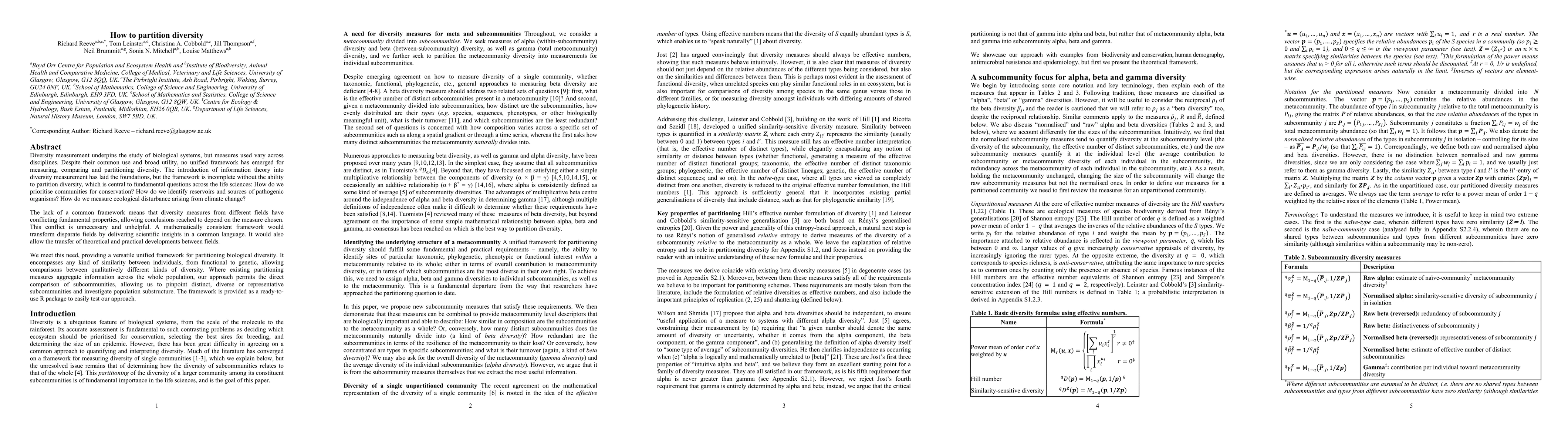 This paper introduces a unified framework for partitioning biological diversity, allowing for the direct comparison of subcommunities and pinpointing distinct, diverse or representative subpopulations, transforming disparate fields with a common language.