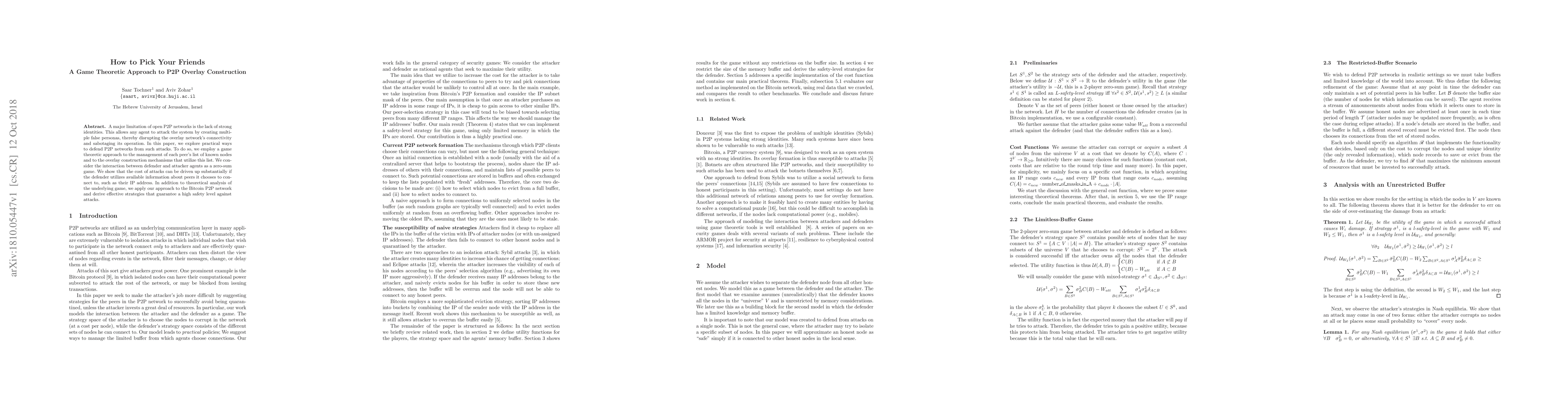 This paper proposes a game-theoretic approach to defend P2P networks from attacks by utilizing information about peers' identities, such as IP addresses, to drive up the cost of attacks.