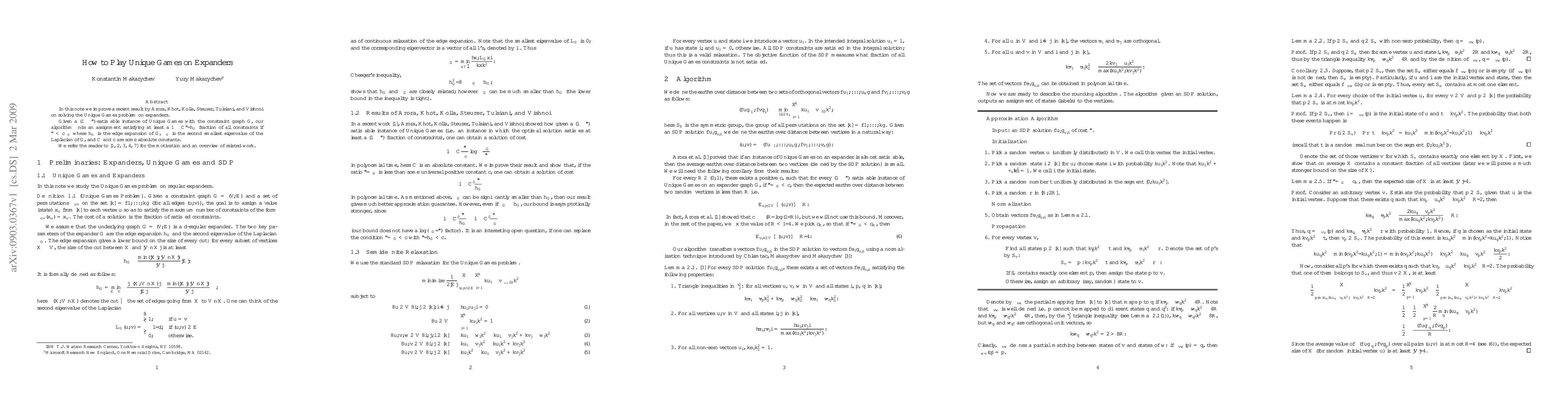 In this note we improve a recent result by Arora, Khot, Kolla, Steurer, Tulsiani, and Vishnoi on solving the Unique Games problem on expanders. Given a $(1-\varepsilon)$-satisfiable instance of Unique Games with the constraint graph $G$, our algorithm finds an assignment satisfying at least a $1- C \varepsilon/h_G$ fraction of all constraints if $\varepsilon < c \lambda_G$ where $h_G$ is the edge expansion of $G$, $\lambda_G$ is the second smallest eigenvalue of the Laplacian of $G$, and $C$ and $c$ are some absolute constants.