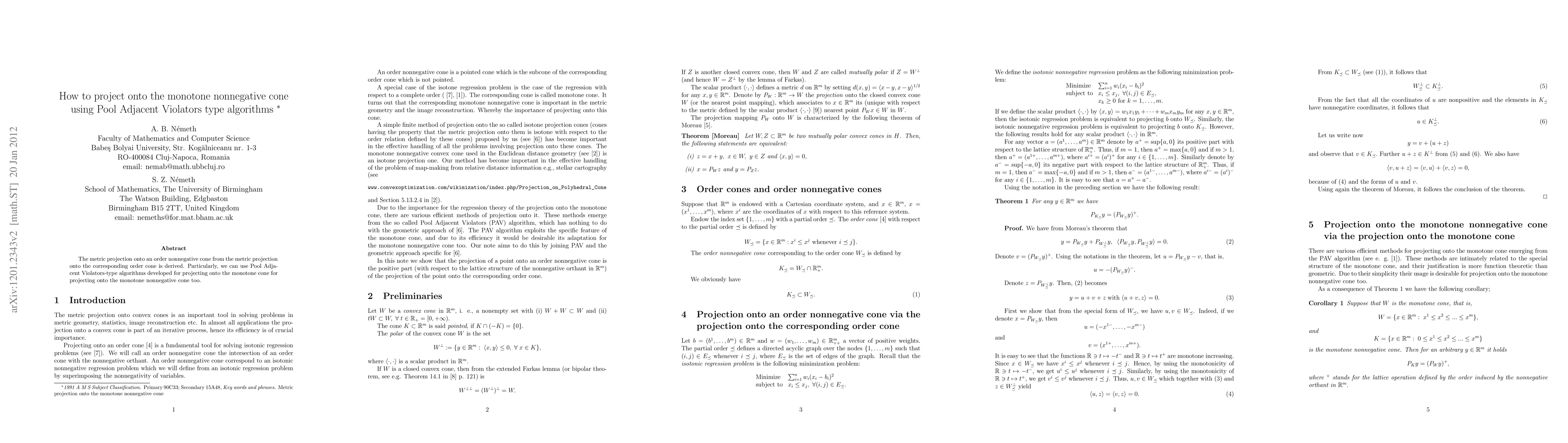 Researchers find that Pool Adjacent Violators-type algorithms can be adapted to project onto monotone nonnegative cones using a modified approach, improving the efficiency of metric projection operations.