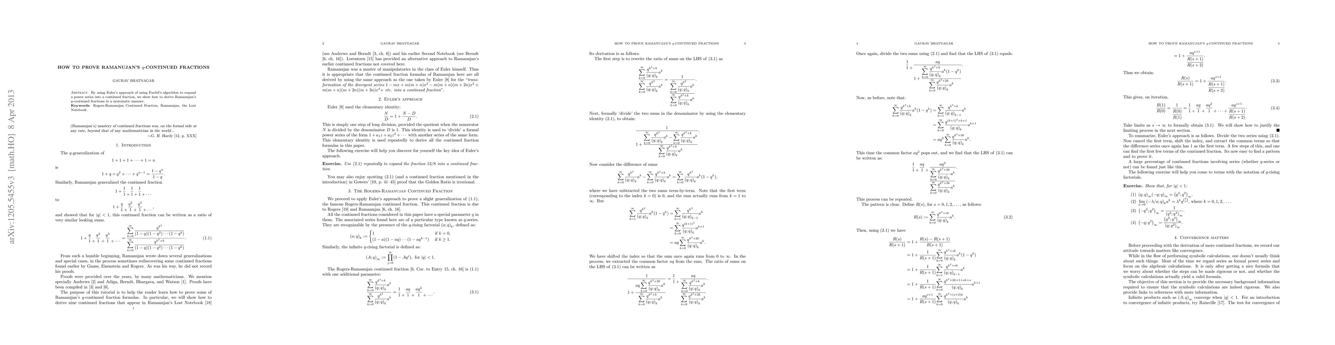 Summary: This paper demonstrates a systematic derivation of Ramanujan's $q$-continued fractions by employing Euler's method of expanding power series into continued fractions using Euclid's algorithm. The approach provides a clear pathway to understanding these complex mathematical expressions.