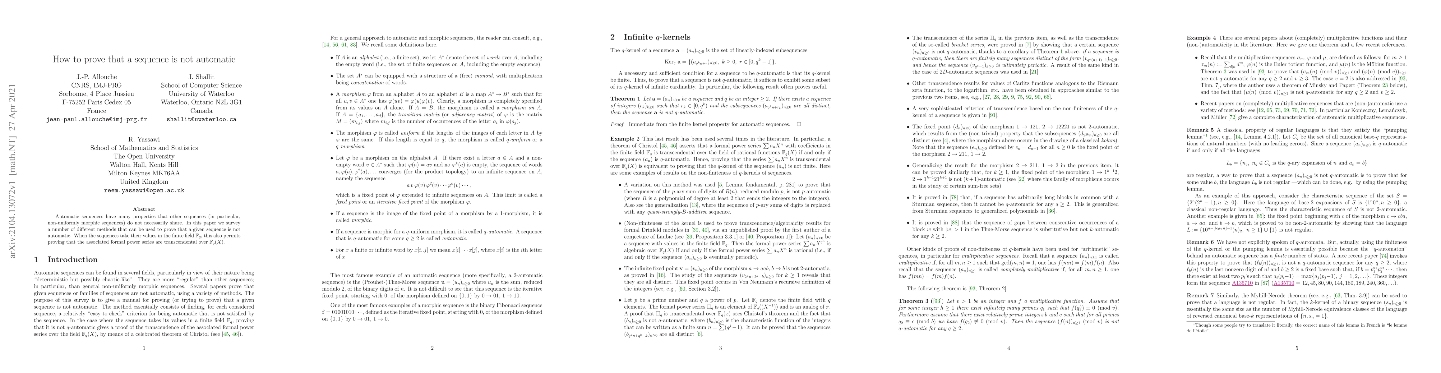 Automatic sequences have many properties that other sequences (in particular, non-uniformly morphic sequences) do not necessarily share. In this paper we survey a number of different methods that can be used to prove that a given sequence is not automatic. When the sequences take their values in the finite field ${\mathbb F}_q$, this also permits proving that the associated formal power series are transcendental over ${\mathbb F}_q(X)$.