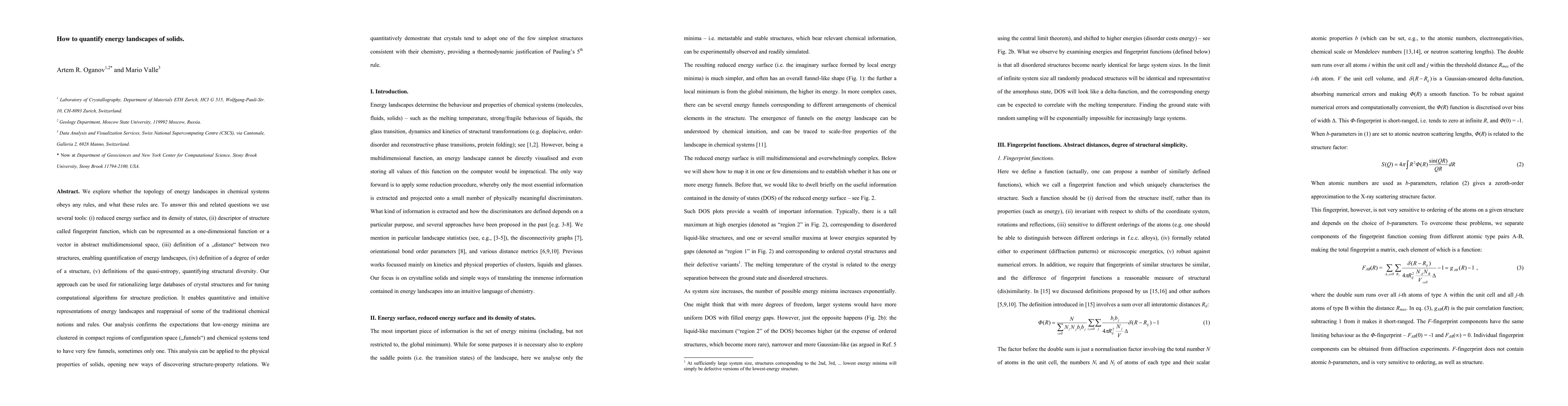 This research explores rules governing energy landscapes in solids using tools like reduced energy surfaces, fingerprint functions, and structural distance definitions. It confirms that low-energy structures cluster in 'funnels' and supports Pauling's fifth rule, suggesting crystals prefer simplest structures thermodynamically.