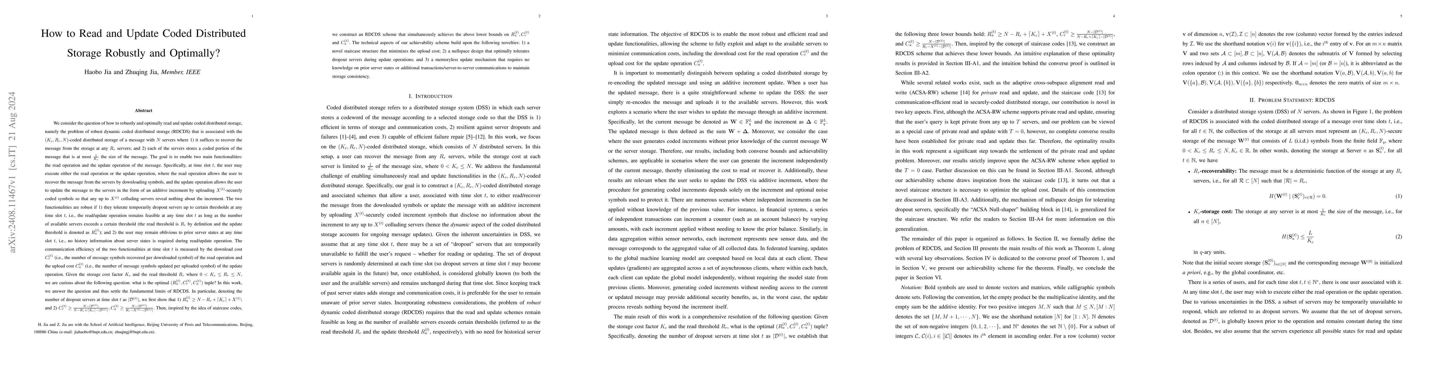 This paper investigates robust dynamic coded distributed storage (RDCDS) systems where messages are distributed across $N$ servers. It focuses on enabling robust read and update operations while optimizing communication costs, addressing the optimal $(R_u^{(t)},C_r^{(t)},C_u^{(t)})$ tuple. The authors establish fundamental limits and construct an RDCDS scheme achieving these bounds, using staircase codes.