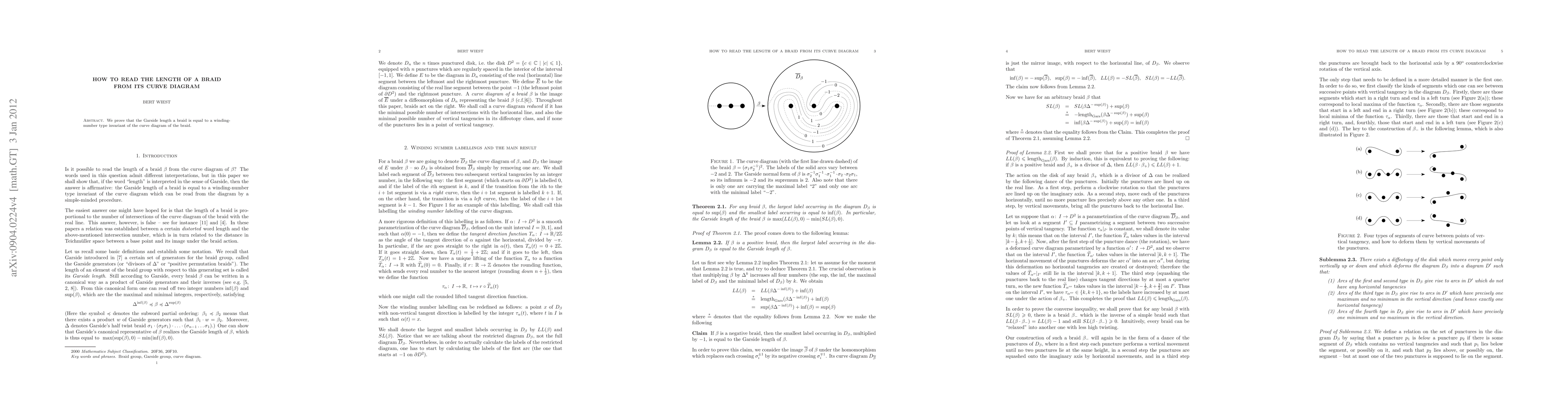 Researchers prove that a braid's length can be determined from its curve diagram through a winding-number invariant, offering a new method for calculating Garside length.