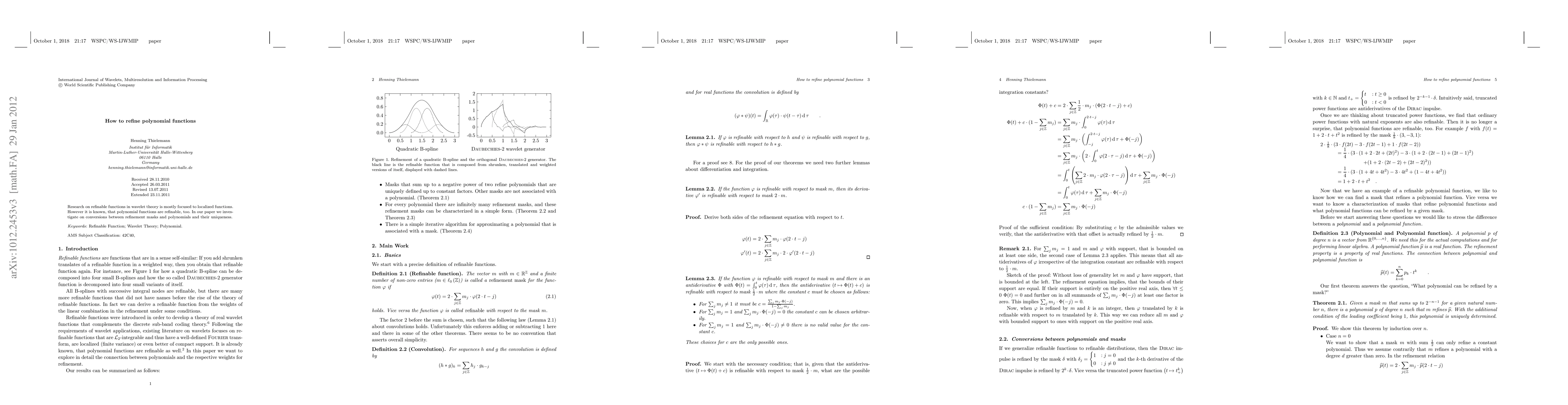 Research on refinable functions in wavelet theory is mostly focused to localized functions. However it is known, that polynomial functions are refinable, too. In our paper we investigate on conversions between refinement masks and polynomials and their uniqueness.