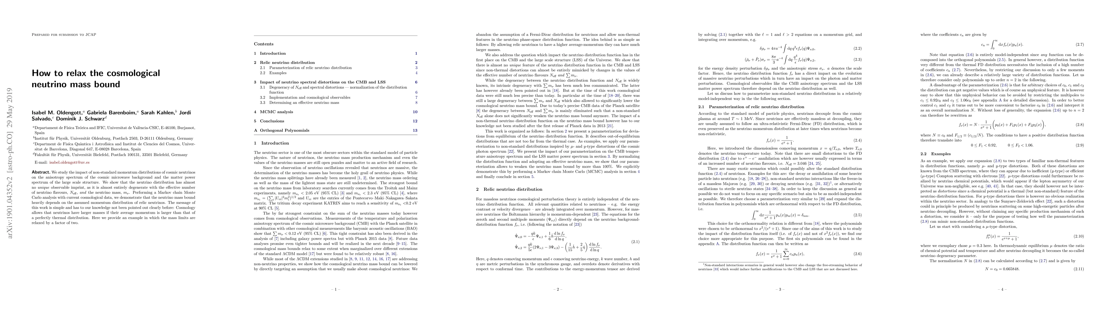 We study the impact of non-standard momentum distributions of cosmic neutrinos on the anisotropy spectrum of the cosmic microwave background and the matter power spectrum of the large scale structure. We show that the neutrino distribution has almost no unique observable imprint, as it is almost entirely degenerate with the effective number of neutrino flavours, $N_{\mathrm{eff}}$, and the neutrino mass, $m_{\nu}$. Performing a Markov chain Monte Carlo analysis with current cosmological data, we demonstrate that the neutrino mass bound heavily depends on the assumed momentum distribution of relic neutrinos. The message of this work is simple and has to our knowledge not been pointed out clearly before: Cosmology allows that neutrinos have larger masses if their average momentum is larger than that of a perfectly thermal distribution. Here we provide an example in which the mass limits are relaxed by a factor of two.