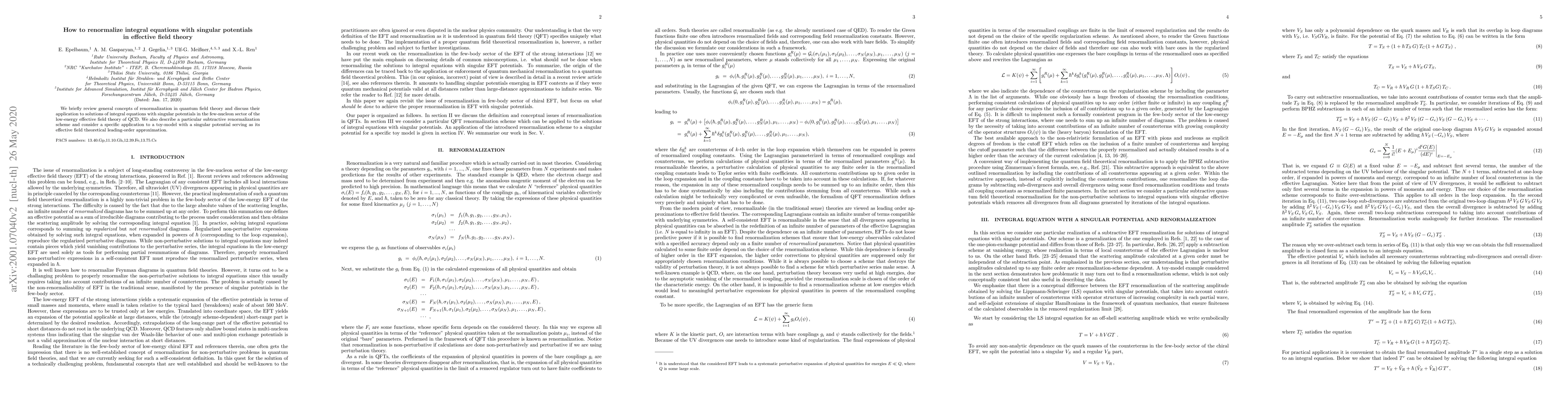 Researchers develop a method to renormalize integral equations with singular potentials in effective field theory, enabling accurate calculations in the few-nucleon sector of Quantum Chromodynamics.