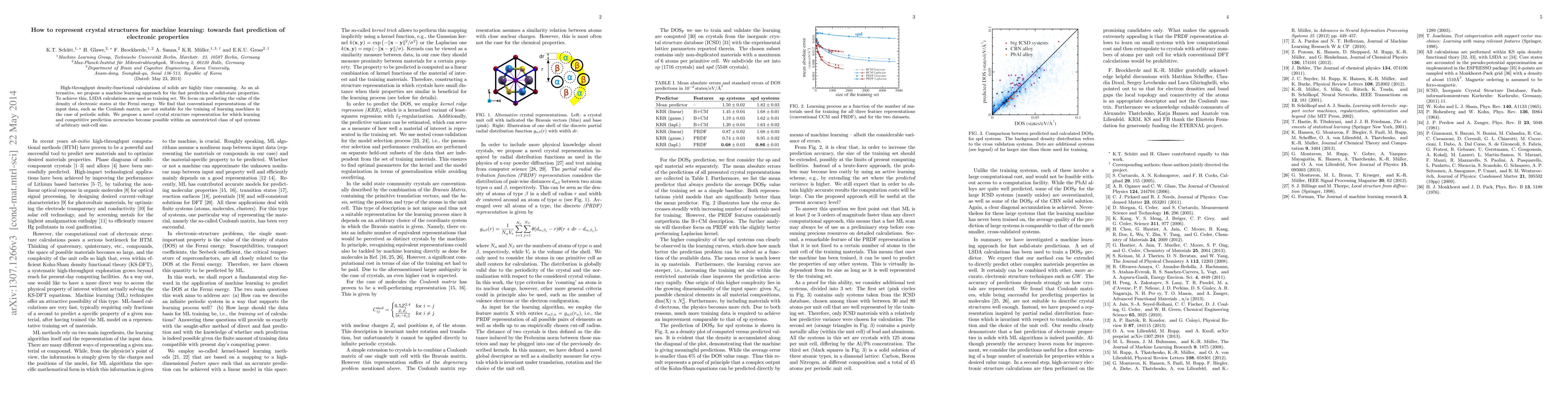 This research proposes a machine learning method for predicting electronic properties of solids, using LSDA calculations as a training set. It introduces a novel crystal structure representation for accurate learning and prediction in spd systems, finding magnetic phenomena in d systems more challenging.