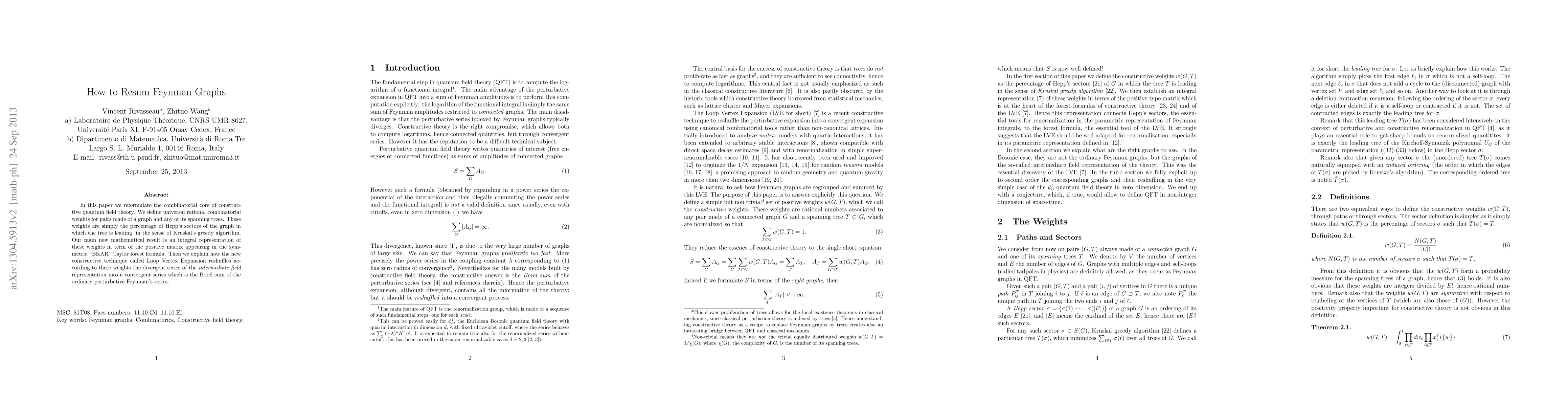 This paper simplifies the combinatoric core of constructive quantum field theory by defining universal rational weights for graph-spanning tree pairs, enabling the transformation of divergent Feynman series into convergent Loop Vertex Expansion series using intermediate field representation graphs.