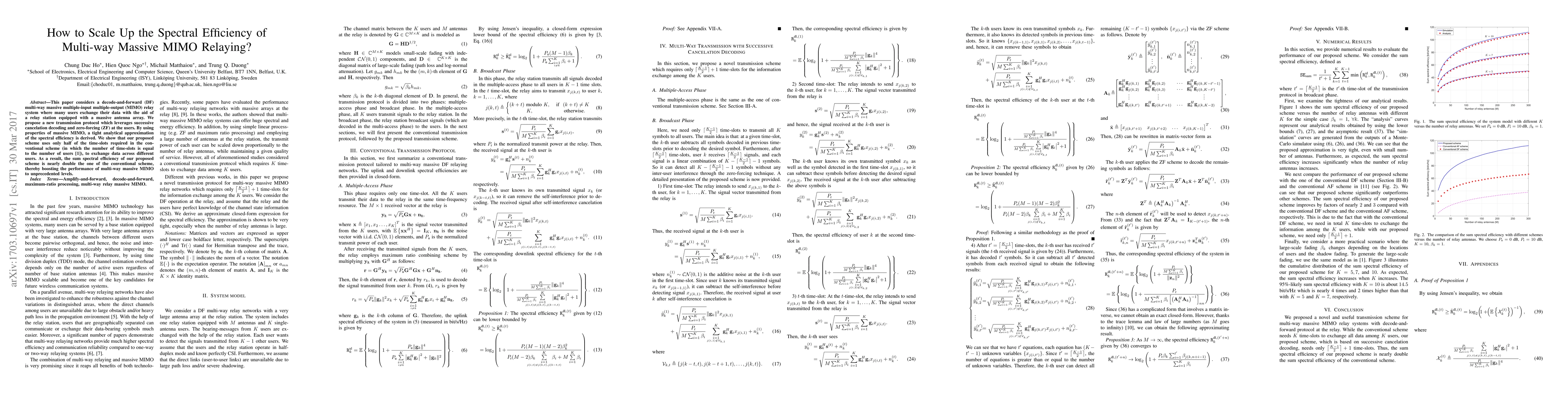 This paper proposes a new transmission protocol for a multi-way massive MIMO relay system using decode-and-forward, successive cancellation decoding, and zero-forcing. The scheme significantly reduces time-slots needed, nearly doubling the spectral efficiency compared to conventional methods.