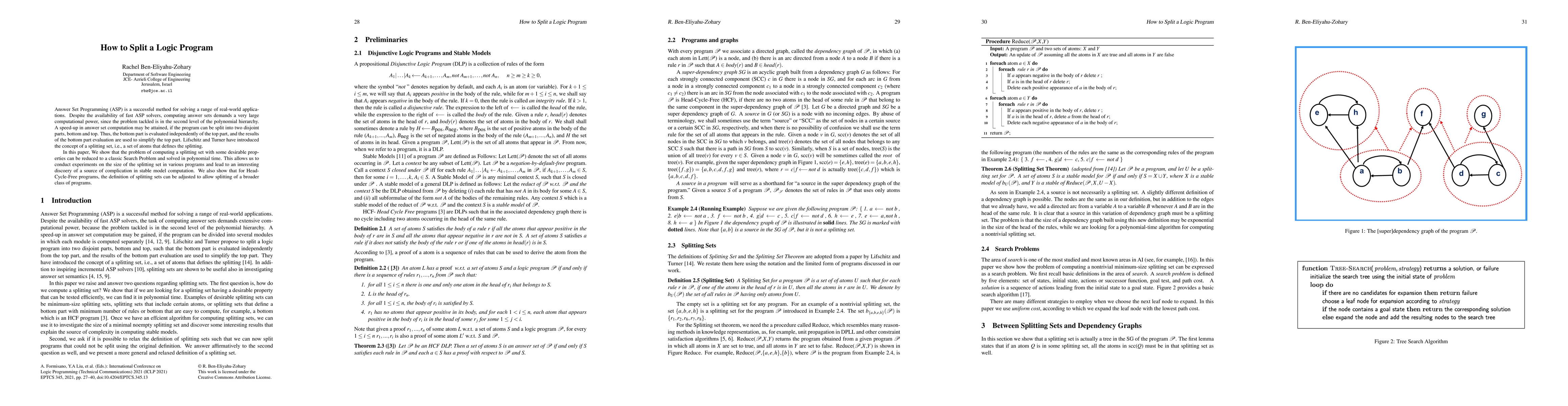 Answer Set Programming (ASP) is a successful method for solving a range of real-world applications. Despite the availability of fast ASP solvers, computing answer sets demands a very large computational power, since the problem tackled is in the second level of the polynomial hierarchy. A speed-up in answer set computation may be attained, if the program can be split into two disjoint parts, bottom and top. Thus, the bottom part is evaluated independently of the top part, and the results of the bottom part evaluation are used to simplify the top part. Lifschitz and Turner have introduced the concept of a splitting set, i.e., a set of atoms that defines the splitting. In this paper, We show that the problem of computing a splitting set with some desirable properties can be reduced to a classic Search Problem and solved in polynomial time. This allows us to conduct experiments on the size of the splitting set in various programs and lead to an interesting discovery of a source of complication in stable model computation. We also show that for Head-Cycle-Free programs, the definition of splitting sets can be adjusted to allow splitting of a broader class of programs.
