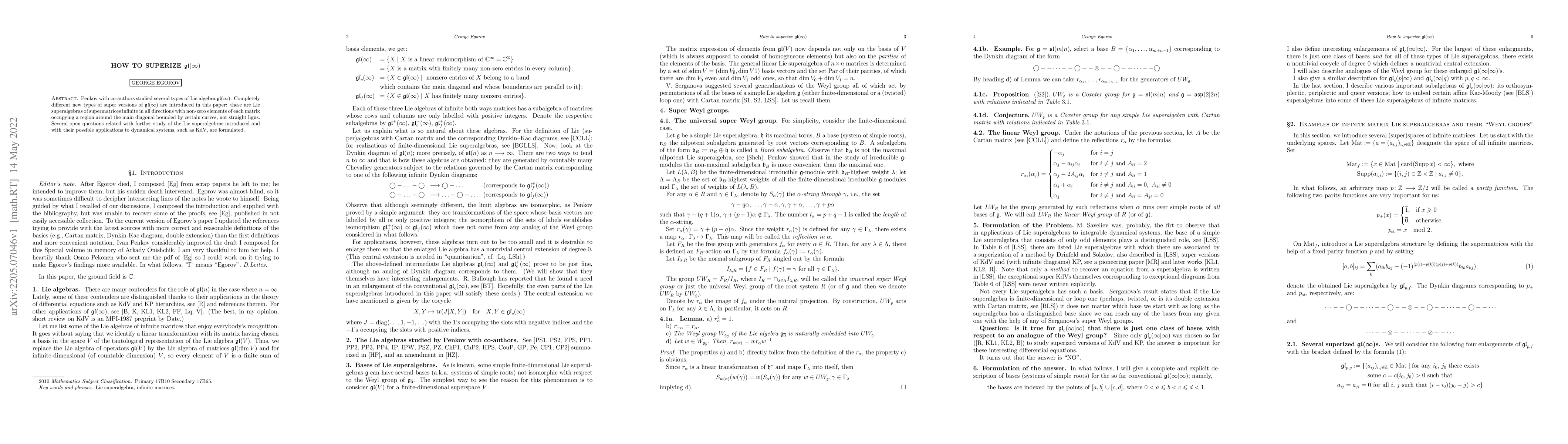 Penkov with co-authors stdied several types of Lie algebra $\mathfrak{gl}(\infty)$. Completely different new types of super versions of $\mathfrak{gl}(\infty)$ are introduced in this paper: these are Lie superalgebras of supermatrices infinite in all directions with non-zero elements of each matrix occupying a region around the main diagonal bounded by certain curves, not straight ligns. Several open questions related with further study of the Lie superalgebras introduced and with their possible applications to dynamical systems, such as KdV, are formulated.