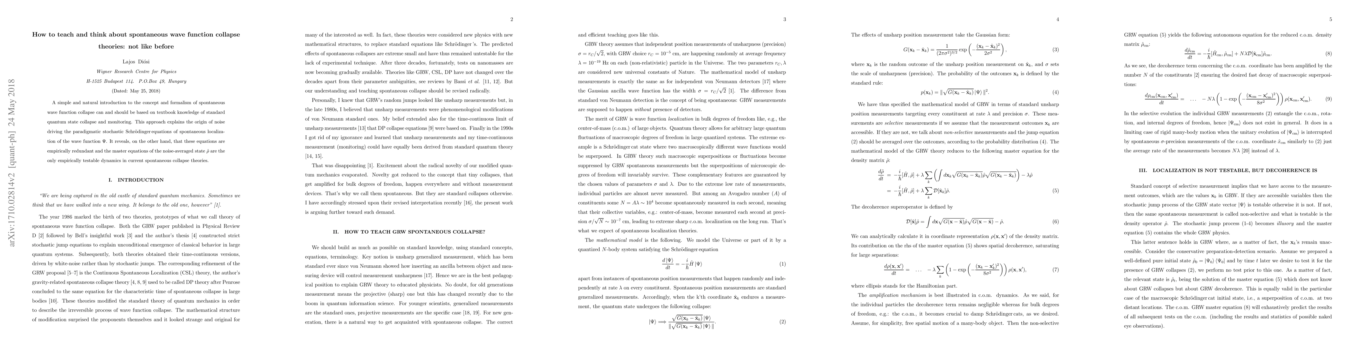 This paper introduces a straightforward approach to understanding spontaneous wave function collapse theories using standard quantum state collapse, highlighting the noise driving stochastic Schrödinger equations. It concludes that only the master equations of the noise-averaged state are empirically testable in current spontaneous collapse theories.
