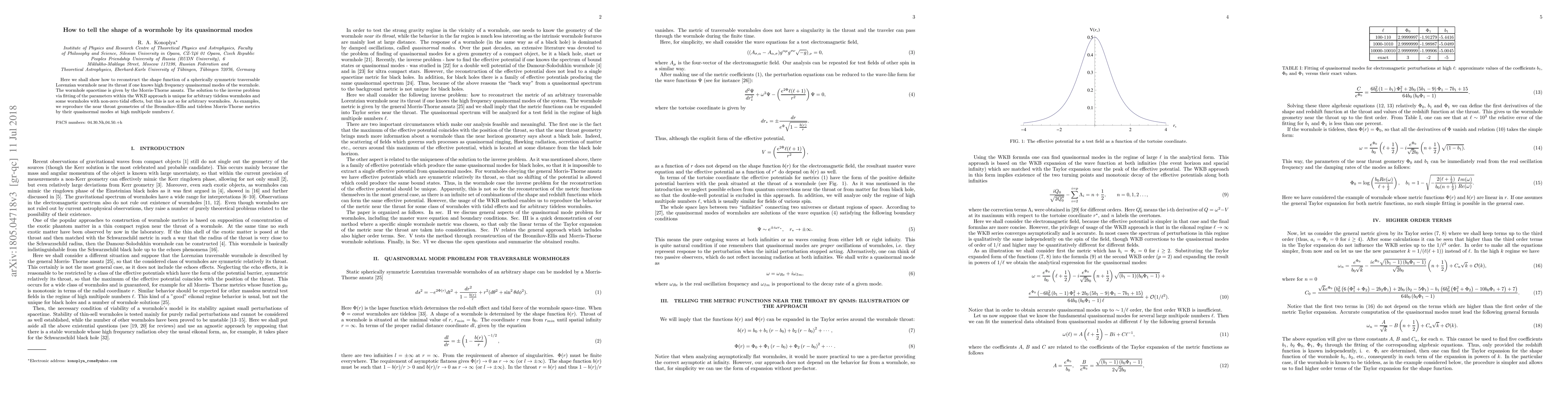 This paper demonstrates how high-frequency quasinormal modes can be used to reconstruct the shape function of a spherically symmetric traversable wormhole near its throat, specifically using the Morris-Thorne ansatz. The method is shown to be uniquely applicable for certain wormholes, including those with non-zero tidal effects.