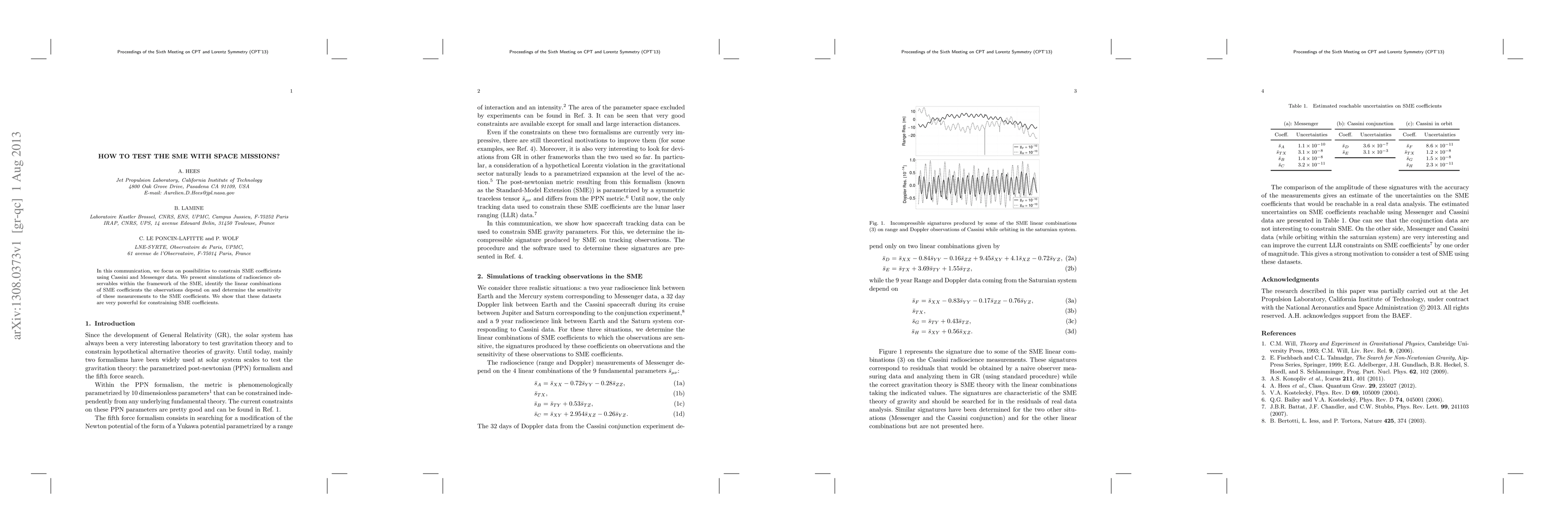 This paper explores how Cassini and Messenger mission data can be used to constrain coefficients in the Standard Model Extension (SME) through radioscience simulations, identifying key linear combinations and demonstrating the datasets' high sensitivity to SME coefficients.