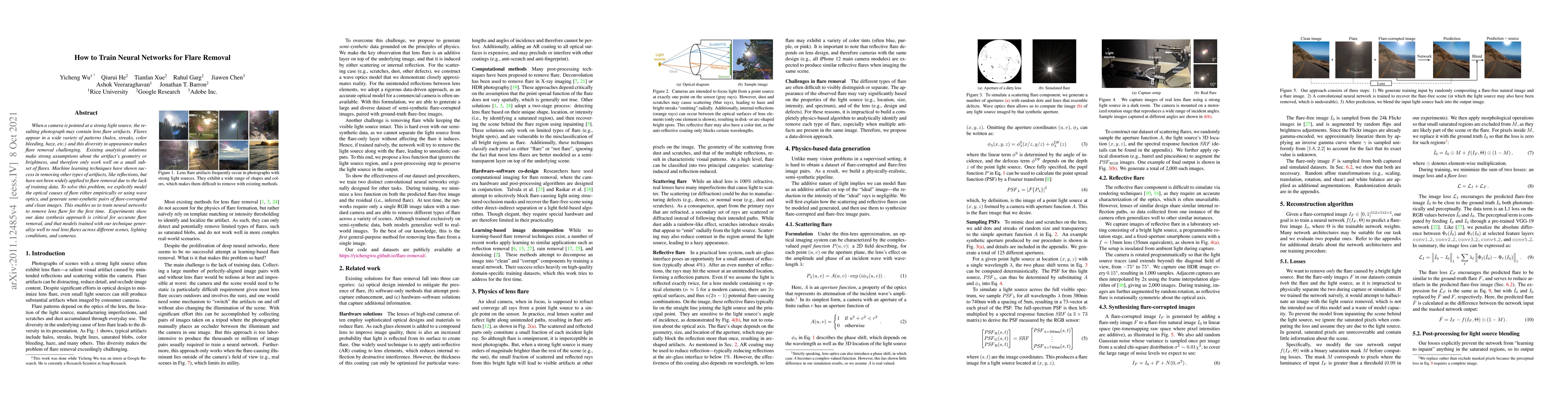 This paper proposes a method to train neural networks for lens flare removal by generating semi-synthetic image pairs using optical models. The approach demonstrates effective generalization to real-world lens flares across various conditions.