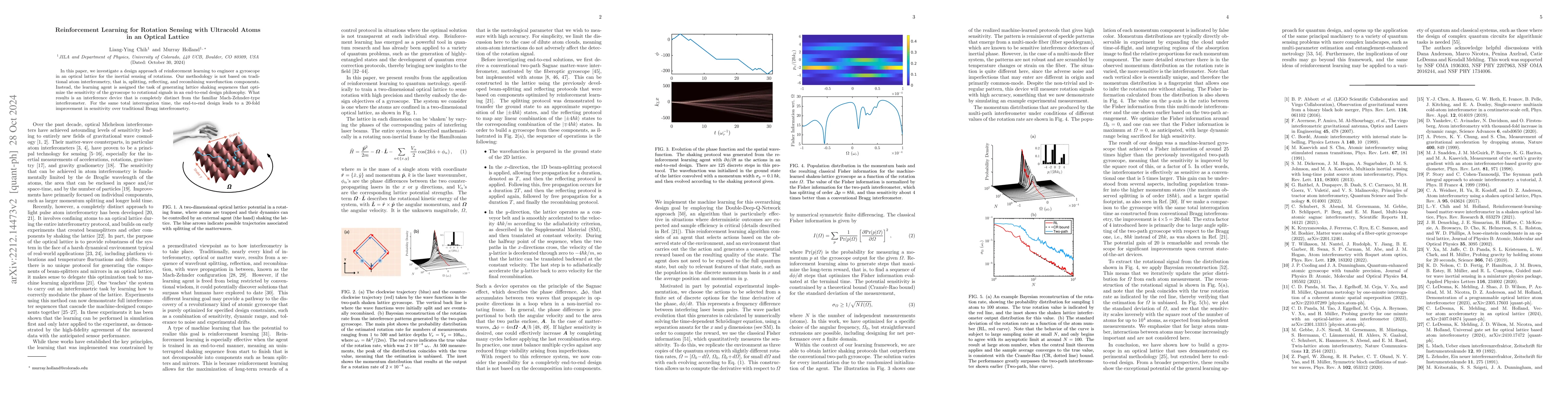 As the complexity of the next generation of quantum sensors increases, it becomes more and more intriguing to consider a new paradigm in which the design and control of metrological devices is supported by machine learning approaches. In a demonstration of such a design philosophy, we apply reinforcement learning to engineer a shaken-lattice matter-wave gyroscope involving minimal human intuition. In fact, the machine is given no instructions as to how to construct the splitting, reflecting, and recombining components intrinsic to conventional interferometry. Instead, we assign the machine the task of optimizing the sensitivity of a gyroscope to rotational signals and ask it to create the lattice-shaking protocol in an end-to-end fashion. What results is a machine-learned solution to the design task that is completely distinct from the familiar sequence of a typical Mach-Zehnder-type matter-wave interferometer, and with significant improvements in sensitivity.