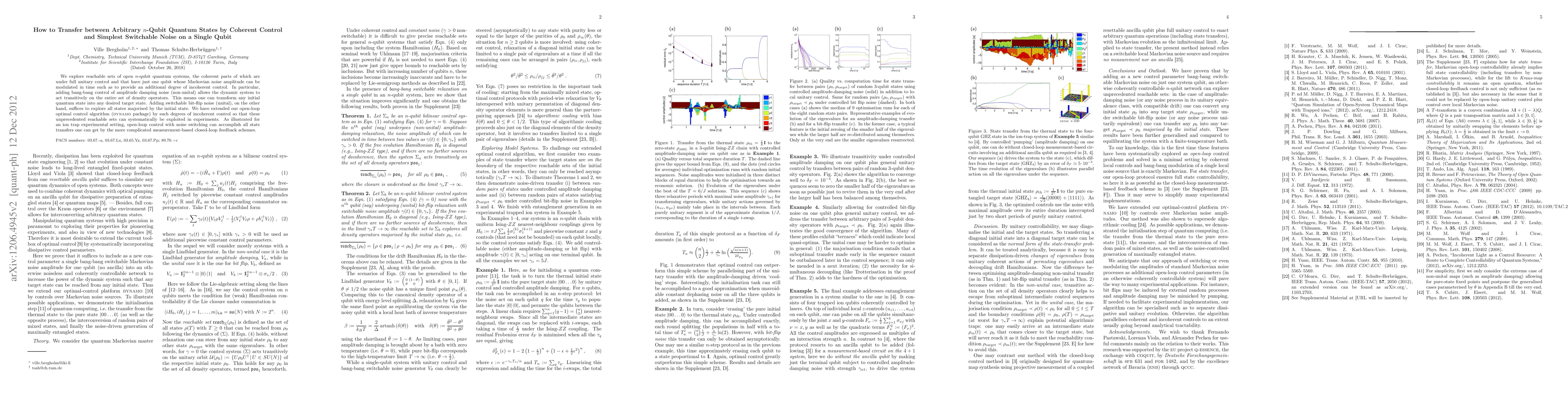 This paper investigates how to transfer between arbitrary $n$-qubit quantum states using coherent control and switchable noise on a single qubit. By modulating amplitude damping and bit-flip noise, the system can dynamically act on the entire set of density operators, enabling state transformations and exploration of states majorised by the initial state.