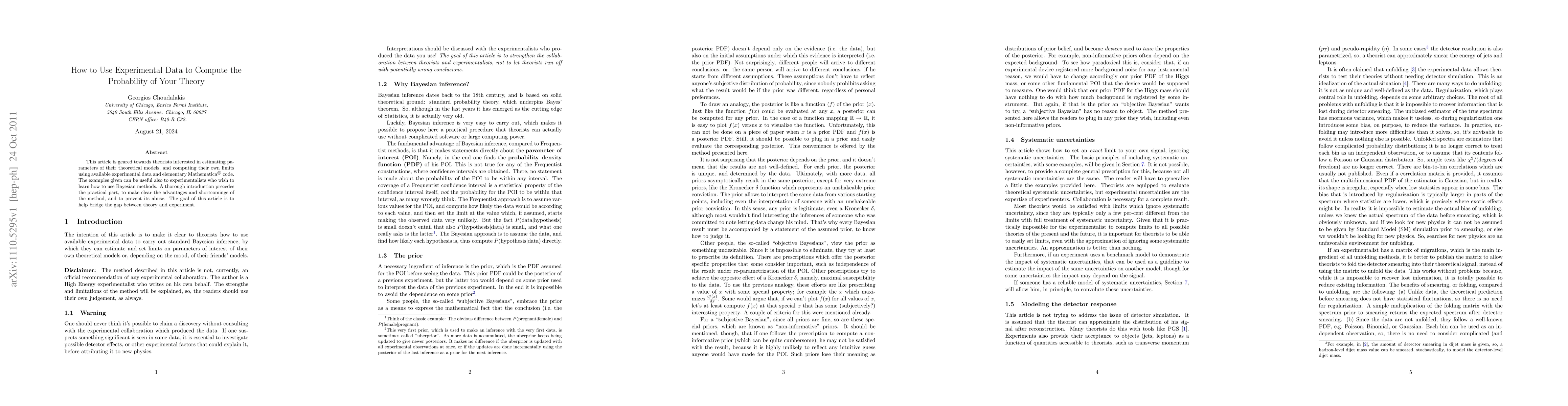 This article is geared towards theorists interested in estimating parameters of their theoretical models, and computing their own limits using available experimental data and elementary Mathematica code. The examples given can be useful also to experimentalists who wish to learn how to use Bayesian methods. A thorough introduction precedes the practical part, to make clear the advantages and shortcomings of the method, and to prevent its abuse. The goal of this article is to help bridge the gap between theory and experiment.