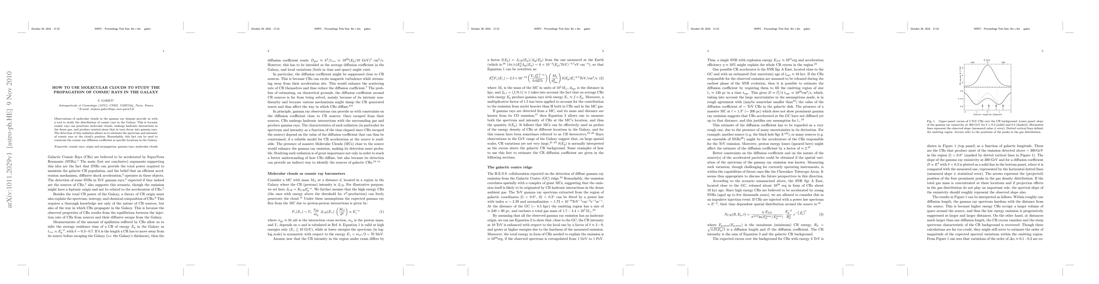 This paper explores using gamma-ray observations of molecular clouds to study cosmic ray propagation in the Galaxy, revealing how cosmic rays interact with dense gas to produce gamma rays that estimate cosmic ray spectra and intensity, and constrain the cosmic ray diffusion coefficient.