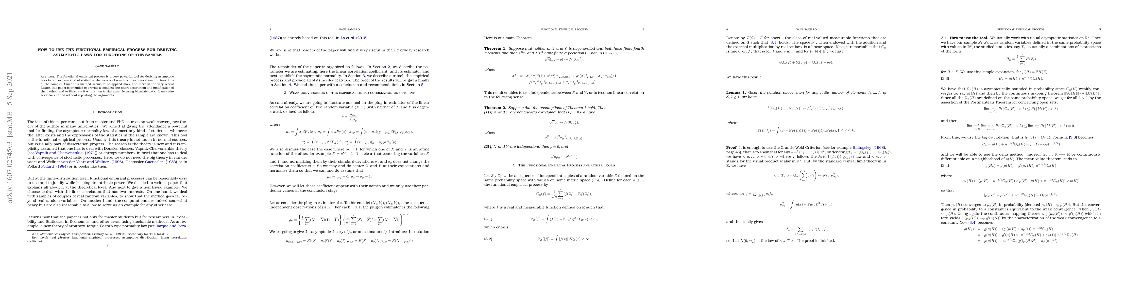 The functional empirical process is a very powerful tool for deriving asymptotic laws for almost any kind of statistics whenever we know how to express them into functions of the sample. Since this method seems to be applied more and more in the very recent future, this paper is intended to provide a complete but short description and justification of the method and to illustrate it with a non-trivial example using bivariate data. It may also serve for citation without repeating the arguments.