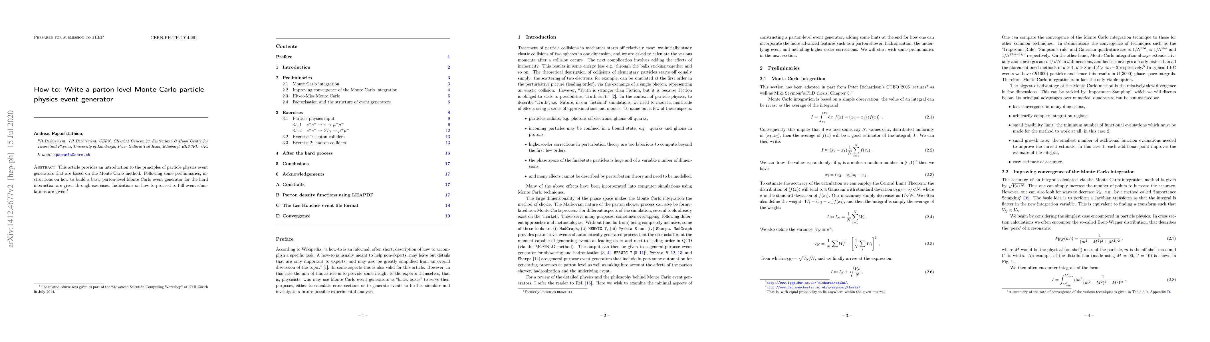 This paper introduces the Monte Carlo method for particle physics event generation, offering step-by-step guidance on constructing a basic parton-level generator, and hints at extending the approach for comprehensive event simulations.