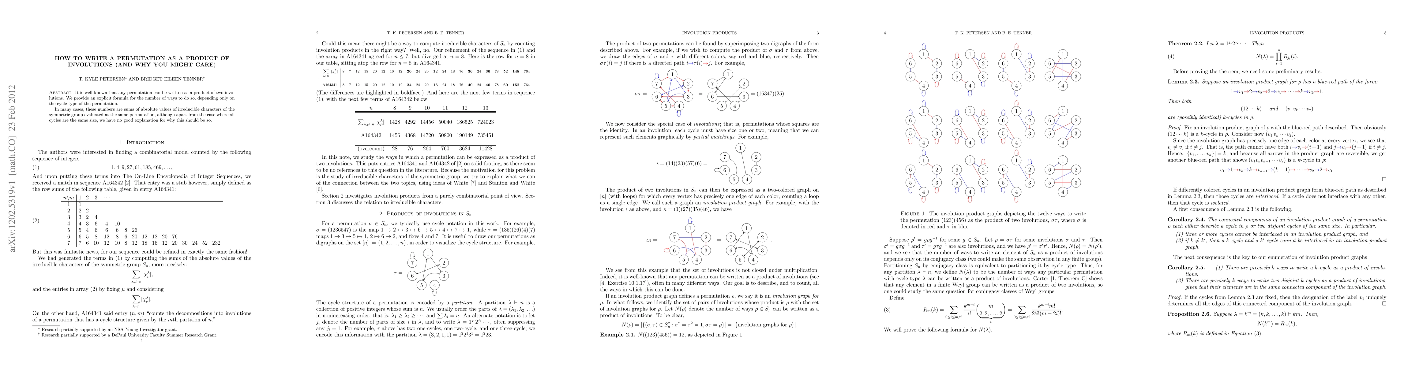 It is well-known that any permutation can be written as a product of two involutions. We provide an explicit formula for the number of ways to do so, depending only on the cycle type of the permutation. In many cases, these numbers are sums of absolute values of irreducible characters of the symmetric group evaluated at the same permutation, although apart from the case where all cycles are the same size, we have no good explanation for why this should be so.