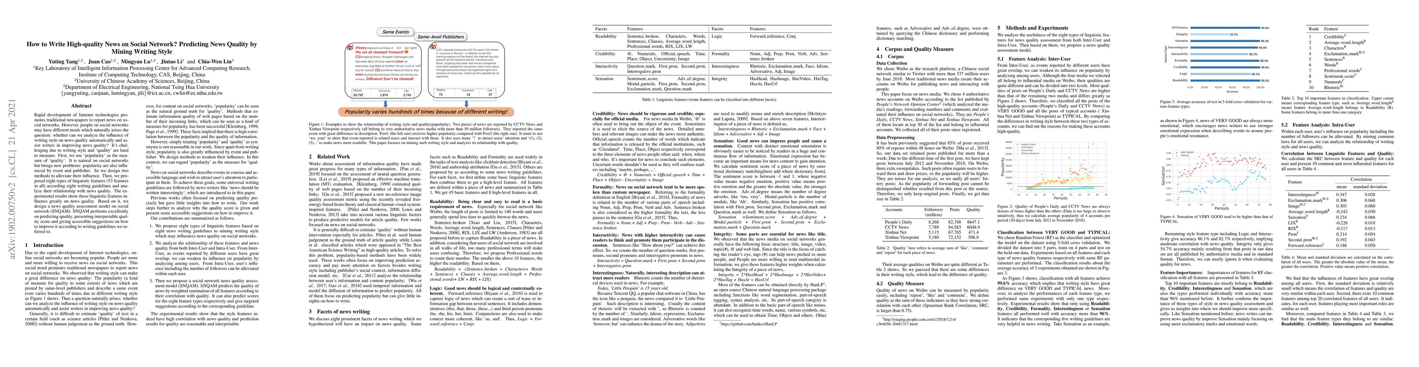 This paper explores how writing style impacts the quality of news on social networks, using 'popularity' as a proxy for quality. It introduces a model, SNQAM, that predicts news quality based on linguistic features derived from writing guidelines, offering suggestions for improvement.
