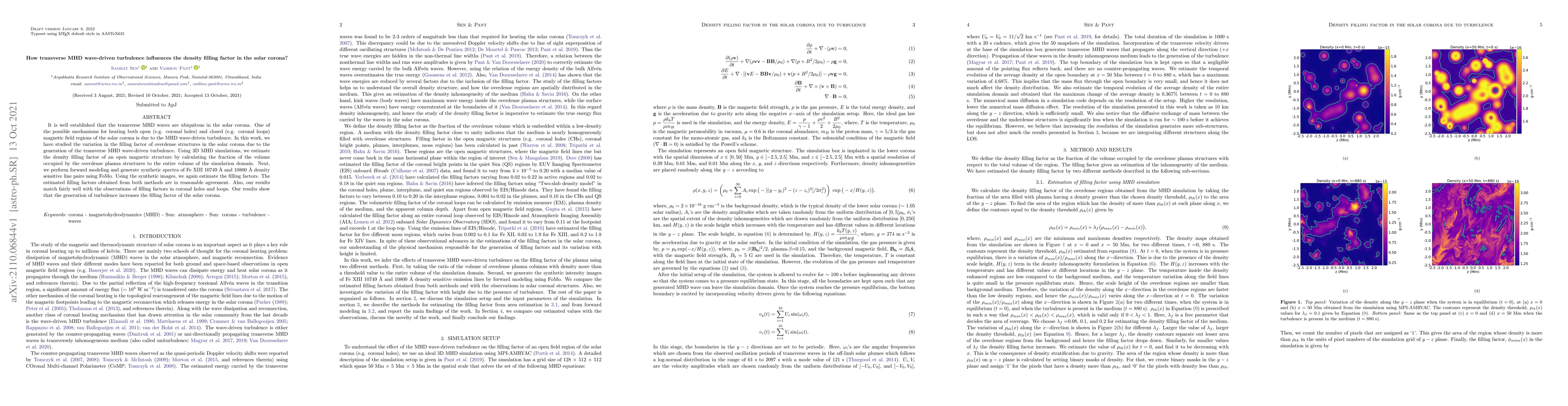 It is well established that the transverse MHD waves are ubiquitous in the solar corona. One of the possible mechanisms for heating both open (e.g. coronal holes) and closed (e.g. coronal loops) magnetic field regions of the solar corona is due to the MHD wave-driven turbulence. In this work, we have studied the variation in the filling factor of overdense structures in the solar corona due to the generation of the transverse MHD wave-driven turbulence. Using 3D MHD simulations, we estimate the density filling factor of an open magnetic structure by calculating the fraction of the volume occupied by the overdense plasma structures to the entire volume of the simulation domain. Next, we perform forward modeling and generate synthetic spectra of Fe XIII 10749 \AA\ and 10800 \AA\ density sensitive line pairs using FoMo. Using the synthetic images, we again estimate the filling factors. The estimated filling factors obtained from both methods are in reasonable agreement. Also, our results match fairly well with the observations of filling factors in coronal holes and loops. Our results show that the generation of turbulence increases the filling factor of the solar corona.