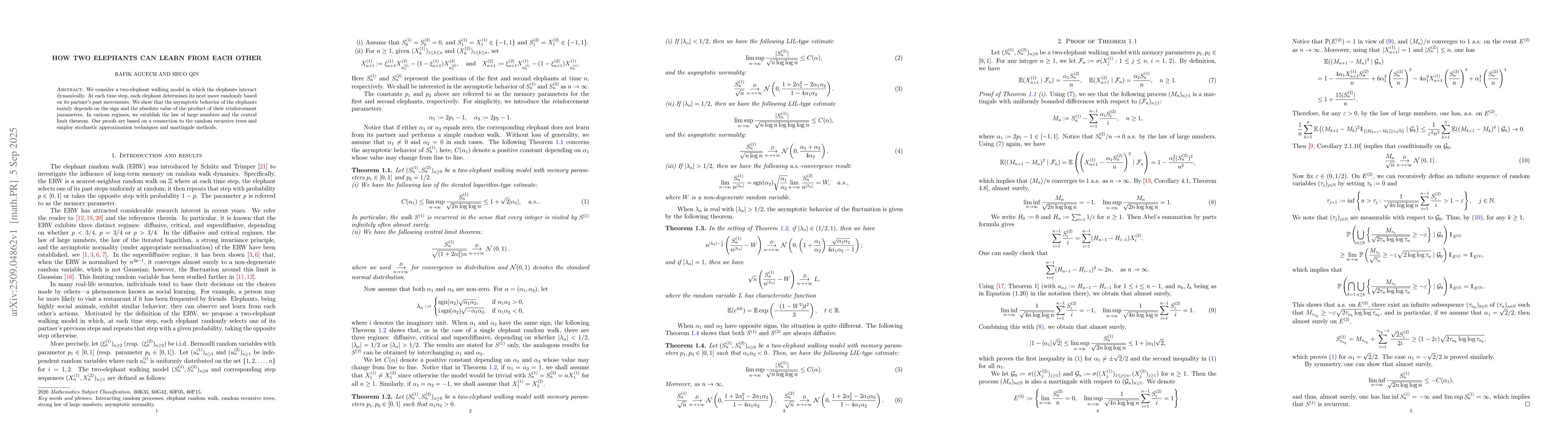 We consider a two-elephant walking model in which the elephants interact dynamically. At each time step, each elephant determines its next move randomly based on its partner's past movements. We show that the asymptotic behavior of the elephants mainly depends on the sign and the absolute value of the product of their reinforcement parameters. In various regimes, we establish the law of large numbers and the central limit theorem. Our proofs are based on a connection to the random recursive trees and employ stochastic approximation techniques and martingale methods.