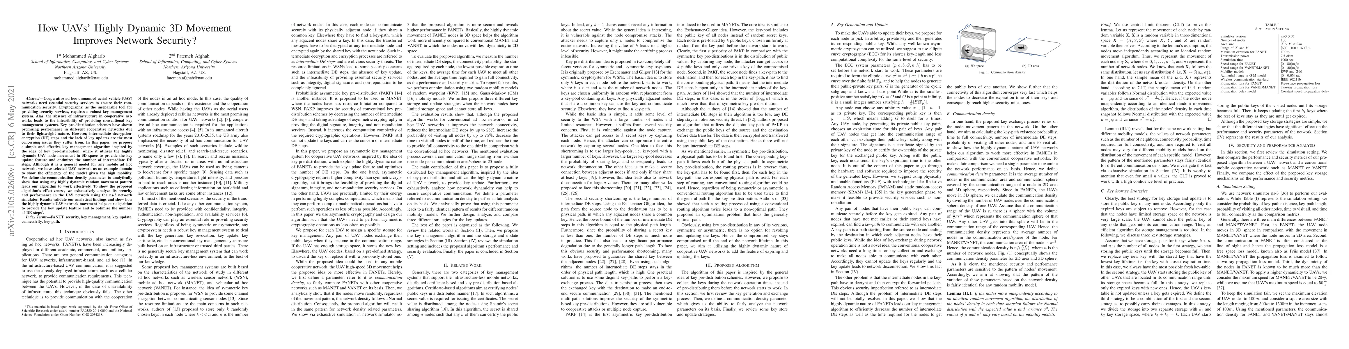 Cooperative ad hoc unmanned aerial vehicle (UAV) networks need essential security services to ensure their communication security. Cryptography, as the inseparable tool for providing security services, requires a robust key management system. Alas, the absence of infrastructure in cooperative networks leads to the infeasibility of providing conventional key management systems. Key pre-distribution schemes have shown promising performance in different cooperative networks due to their lightweight nature. However, intermediate decryption-encryption (DE) steps and the lack of key updates are the most concerning issues they suffer from. In this paper, we propose a simple and effective key management algorithm inspired by the idea of key pre-distribution, where it utilizes the highly dynamic UAV node movement in 3D space to provide the key update feature and optimizes the number of intermediate DE steps. Although it is a general model for any mobile ad hoc network, we have selected UAV network as an example domain to show the efficiency of the model given the high mobility. We define the communication density parameter to analytically show that using any highly dynamic random movement pattern leads our algorithm to work effectively. To show the proposed algorithm's effectiveness, we exhaustively analyze its security and performance in the UAV network using the ns-3 network simulator. Results validate our analytical findings and show how the highly dynamic UAV network movement helps our algorithm to provide the key update feature and to optimize the number of DE steps.