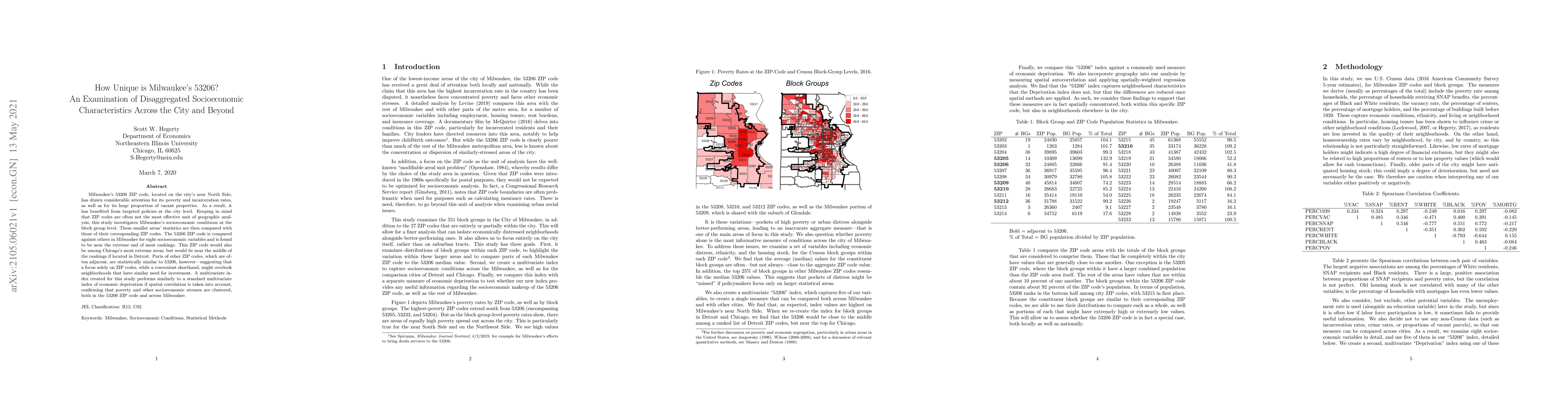 Milwaukee's 53206 ZIP code, located on the city's near North Side, has drawn considerable attention for its poverty and incarceration rates, as well as for its large proportion of vacant properties. As a result, it has benefited from targeted policies at the city level. Keeping in mind that ZIP codes are often not the most effective unit of geographic analysis, this study investigates Milwaukee's socioeconomic conditions at the block group level. These smaller areas' statistics are then compared with those of their corresponding ZIP codes. The 53206 ZIP code is compared against others in Milwaukee for eight socioeconomic variables and is found to be near the extreme end of most rankings. This ZIP code would also be among Chicago's most extreme areas, but would lie near the middle of the rankings if located in Detroit. Parts of other ZIP codes, which are often adjacent, are statistically similar to 53206, however--suggesting that a focus solely on ZIP codes, while a convenient shorthand, might overlook neighborhoods that have similar need for investment. A multivariate index created for this study performs similarly to a standard multivariate index of economic deprivation if spatial correlation is taken into account, confirming that poverty and other socioeconomic stresses are clustered, both in the 53206 ZIP code and across Milwaukee.