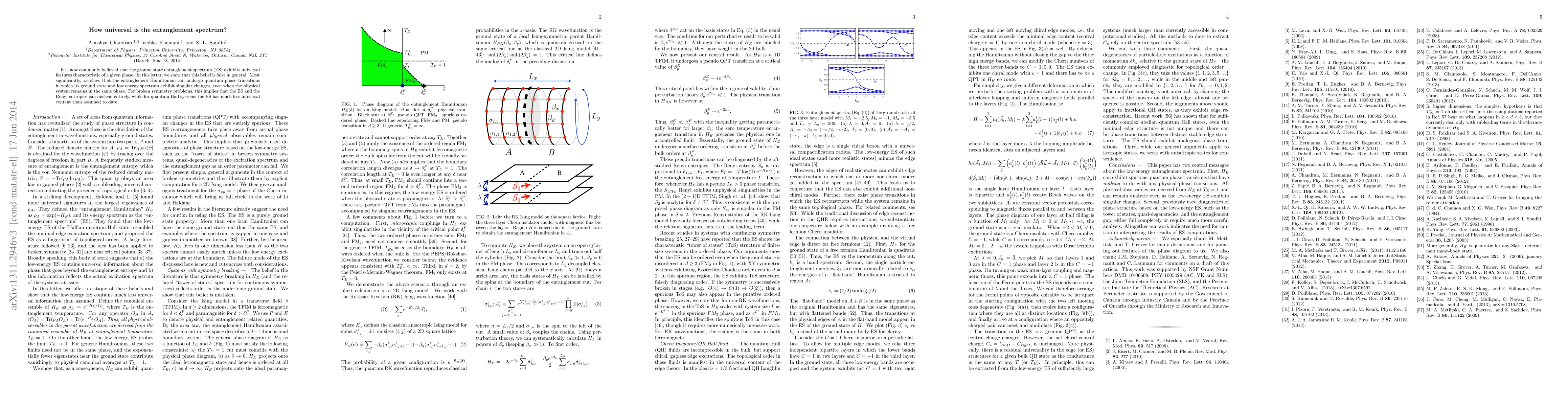 The paper challenges the universality of the ground state entanglement spectrum, demonstrating it can change drastically even within the same phase due to quantum phase transitions in the entanglement Hamiltonian. This implies potential misinterpretations in broken symmetry problems and less universal content in quantum Hall systems' entanglement spectra than previously thought.