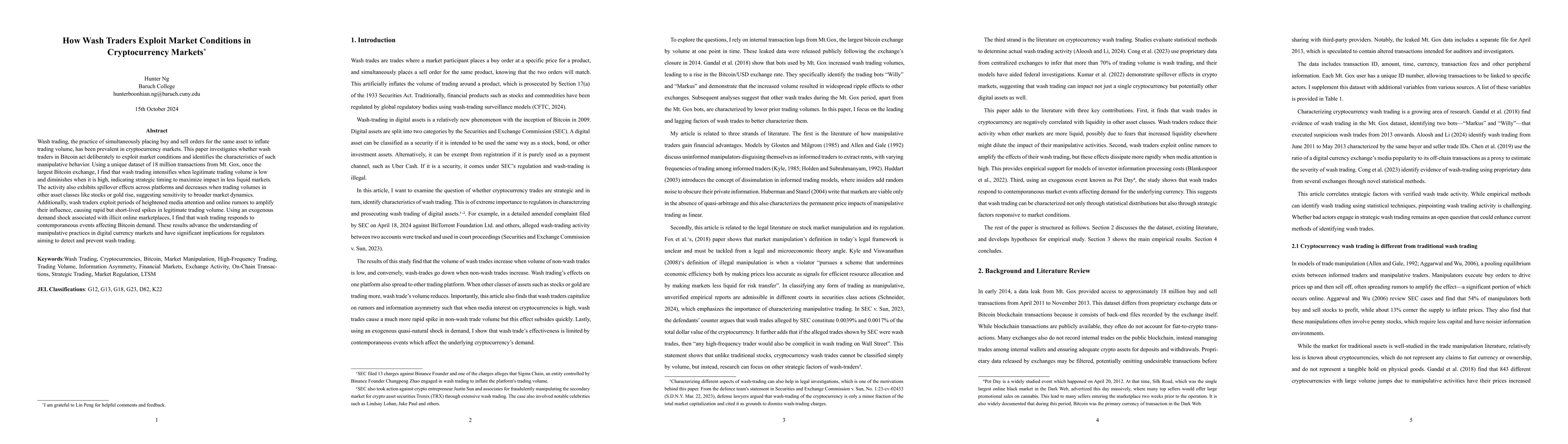 This paper explores how wash traders manipulate cryptocurrency markets by simultaneously placing buy and sell orders to inflate volume, especially during low legitimate trading periods. It finds that wash trading intensifies in less liquid markets and responds to broader market conditions and media attention, posing challenges for regulators.