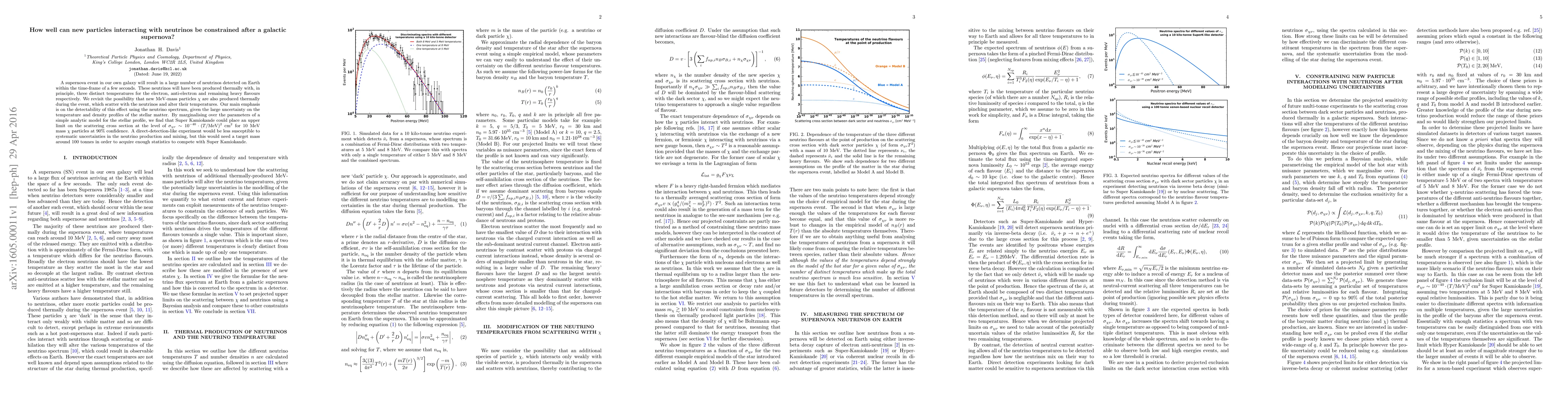 A supernova event in our own galaxy will result in a large number of neutrinos detected on Earth within the time-frame of a few seconds. These neutrinos will have been produced thermally with, in principle, three distinct temperatures for the electron, anti-electron and remaining heavy flavours respectively. We revisit the possibility that new MeV-mass particles $\chi$ are also produced thermally during the event, which scatter with the neutrinos and alter their temperatures. Our main emphasis is on the detectability of this effect using the neutrino spectrum, given the large uncertainty on the temperature and density profiles of the stellar matter. By marginalising over the parameters of a simple analytic model for the stellar profile, we find that Super Kamiokande could place an upper limit on the scattering cross section at the level of $\sigma_{\chi \nu} \sim 10^{-40} \cdot (T / \mathrm{MeV})^2$ cm$^2$ for 10 MeV mass particles at 90% confidence. A direct-detection-like experiment would be less susceptible to systematic uncertainties in the neutrino production and mixing, but this would need a target mass around 100 tonnes in order to acquire enough statistics to compete with Super Kamiokande.