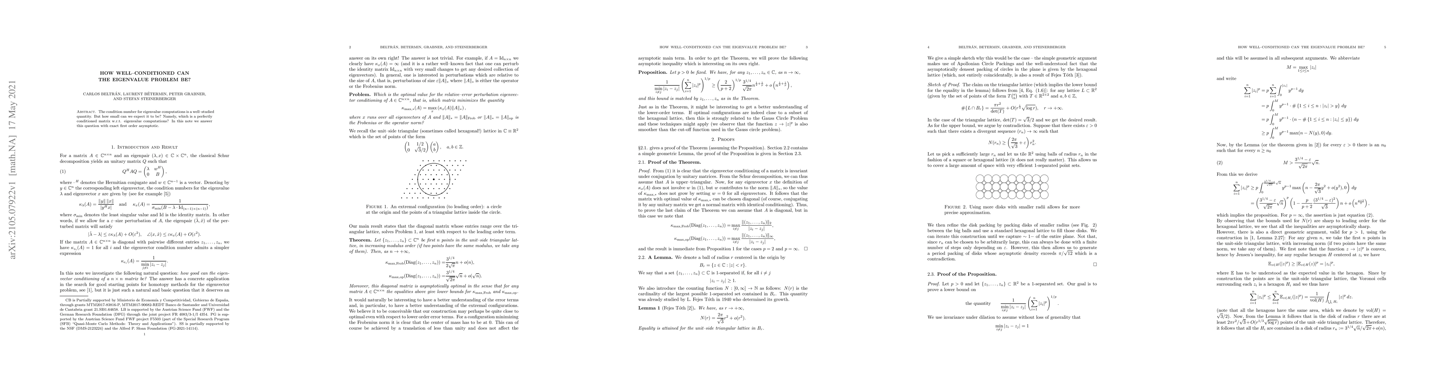The condition number for eigenvalue computations is a well--studied quantity. But how small can we expect it to be? Namely, which is a perfectly conditioned matrix w.r.t. eigenvalue computations? In this note we answer this question with exact first order asymptotic.