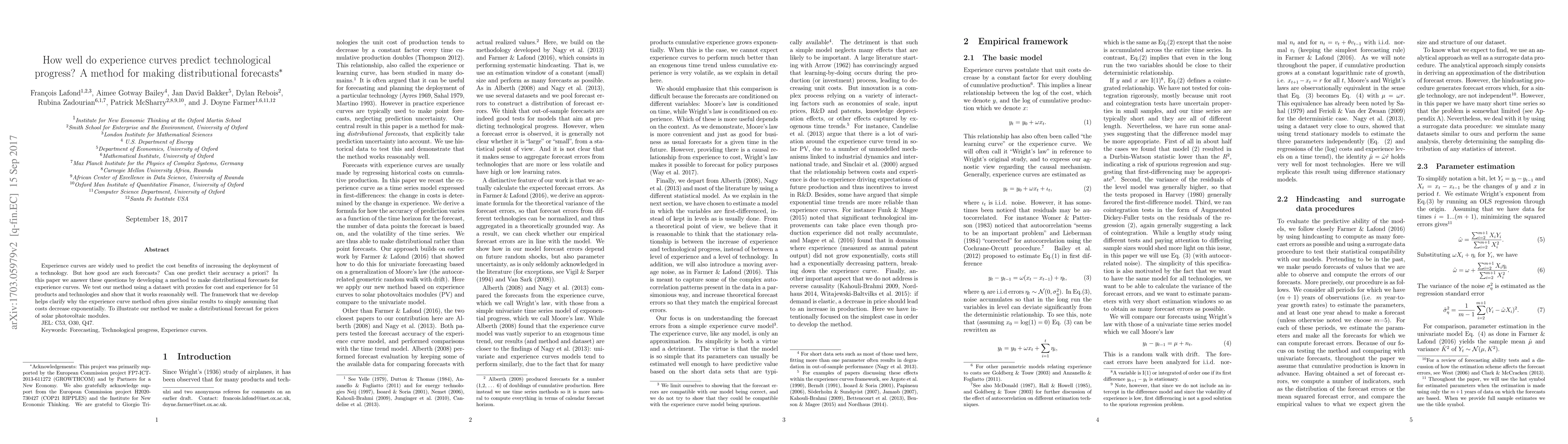 Experience curves are widely used to predict the cost benefits of increasing the deployment of a technology. But how good are such forecasts? Can one predict their accuracy a priori? In this paper we answer these questions by developing a method to make distributional forecasts for experience curves. We test our method using a dataset with proxies for cost and experience for 51 products and technologies and show that it works reasonably well. The framework that we develop helps clarify why the experience curve method often gives similar results to simply assuming that costs decrease exponentially. To illustrate our method we make a distributional forecast for prices of solar photovoltaic modules.