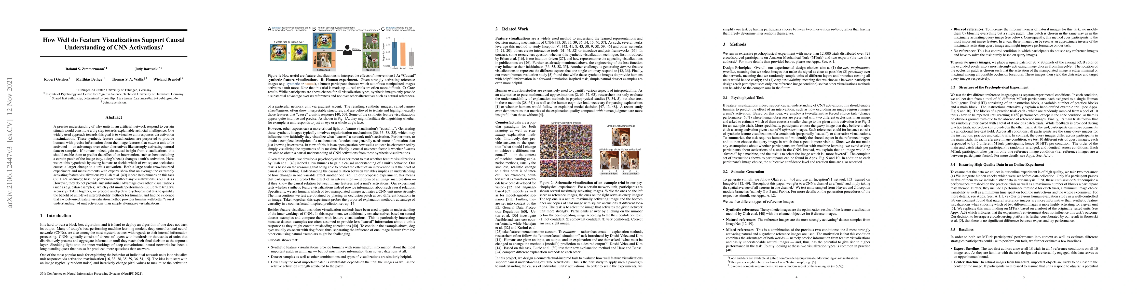 A precise understanding of why units in an artificial network respond to certain stimuli would constitute a big step towards explainable artificial intelligence. One widely used approach towards this goal is to visualize unit responses via activation maximization. These synthetic feature visualizations are purported to provide humans with precise information about the image features that cause a unit to be activated - an advantage over other alternatives like strongly activating natural dataset samples. If humans indeed gain causal insight from visualizations, this should enable them to predict the effect of an intervention, such as how occluding a certain patch of the image (say, a dog's head) changes a unit's activation. Here, we test this hypothesis by asking humans to decide which of two square occlusions causes a larger change to a unit's activation. Both a large-scale crowdsourced experiment and measurements with experts show that on average the extremely activating feature visualizations by Olah et al. (2017) indeed help humans on this task ($68 \pm 4$% accuracy; baseline performance without any visualizations is $60 \pm 3$%). However, they do not provide any substantial advantage over other visualizations (such as e.g. dataset samples), which yield similar performance ($66\pm3$% to $67 \pm3$% accuracy). Taken together, we propose an objective psychophysical task to quantify the benefit of unit-level interpretability methods for humans, and find no evidence that a widely-used feature visualization method provides humans with better "causal understanding" of unit activations than simple alternative visualizations.