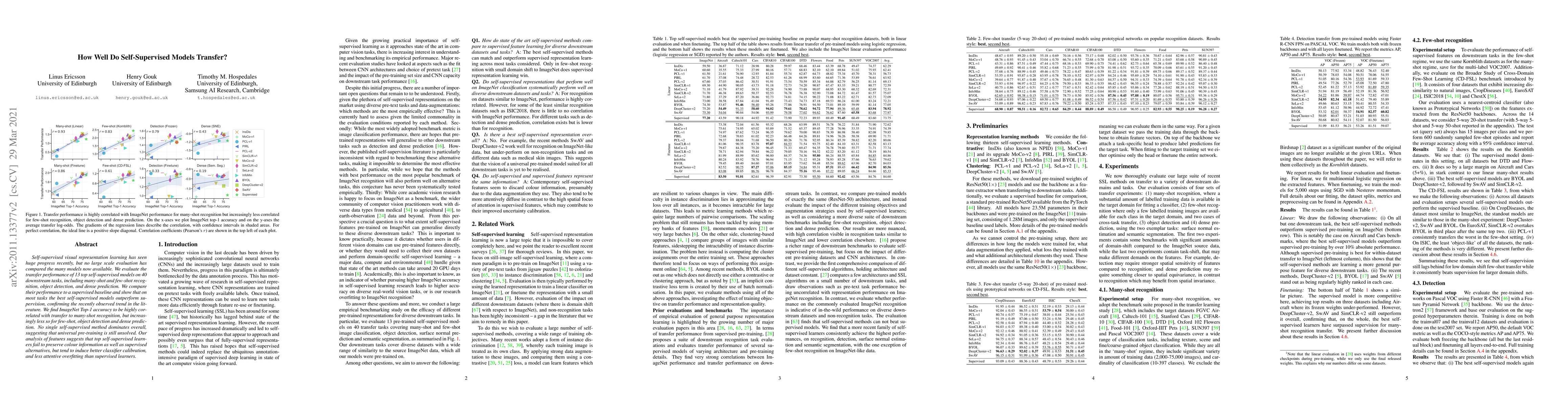 A study evaluates 13 top self-supervised models on 40 downstream tasks, finding that they outperform a supervised baseline on most tasks but fail to dominate overall, suggesting the need for universal pre-training. The study also reveals that self-supervised learners preserve classifier calibration and reduce overfitting but struggle with color information preservation.
