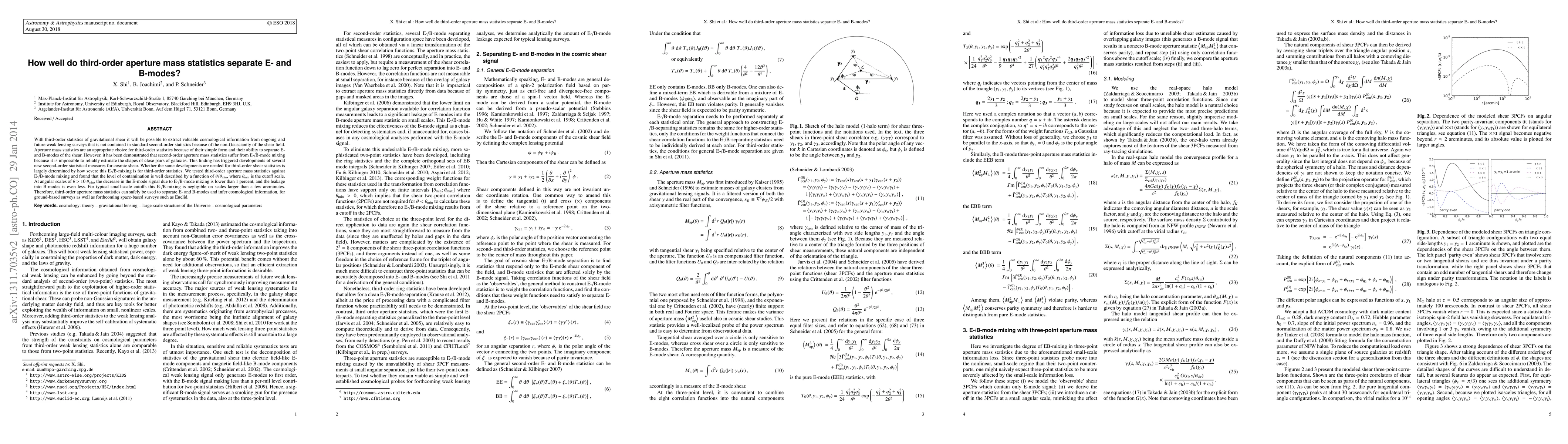 This paper investigates the effectiveness of third-order aperture mass statistics in separating E- and B-modes in gravitational shear, finding minimal E-/B-mode mixing for angular scales larger than 10 times the minimum cut-off scale. It concludes that these statistics are reliable for extracting cosmological information from weak lensing surveys.