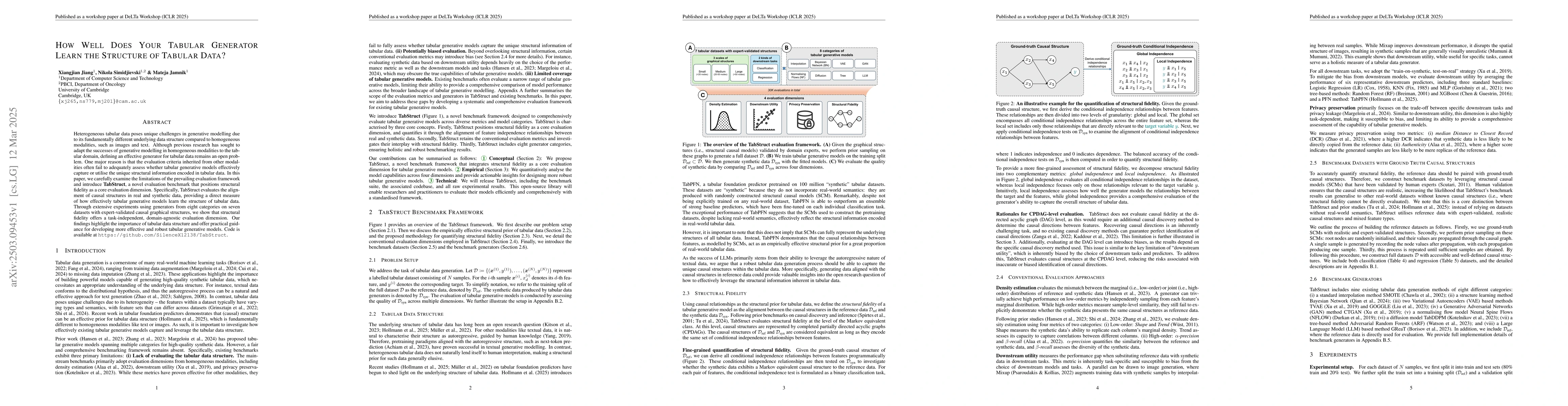TabStruct introduces a novel benchmark framework for evaluating tabular generative models, focusing on structural fidelity as a core evaluation dimension and quantifying it by evaluating conditional independence relationships between features.