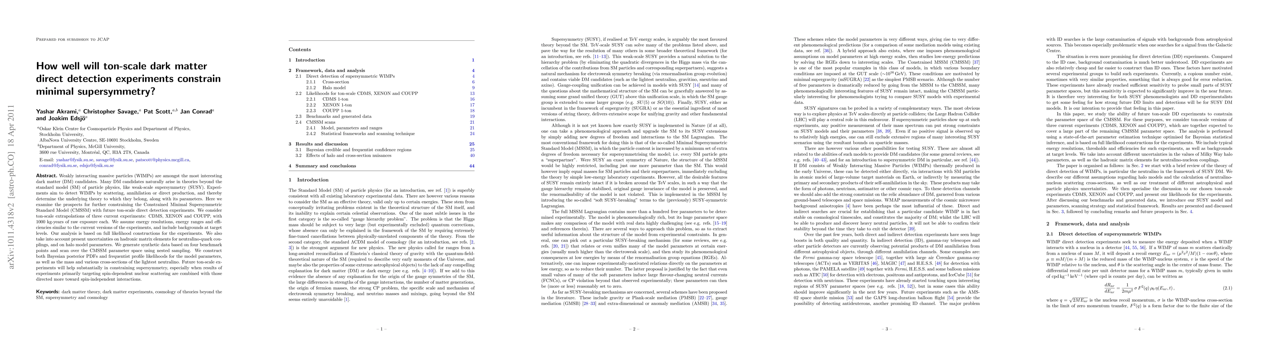 This paper assesses how future ton-scale dark matter detection experiments will constrain the Constrained Minimal Supersymmetric Standard Model (CMSSM). It projects the capabilities of upgraded CDMS, XENON, and COUPP experiments, finding that they will significantly improve constraints on supersymmetry parameters, especially when combining results from different interaction types.